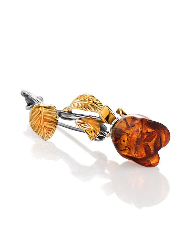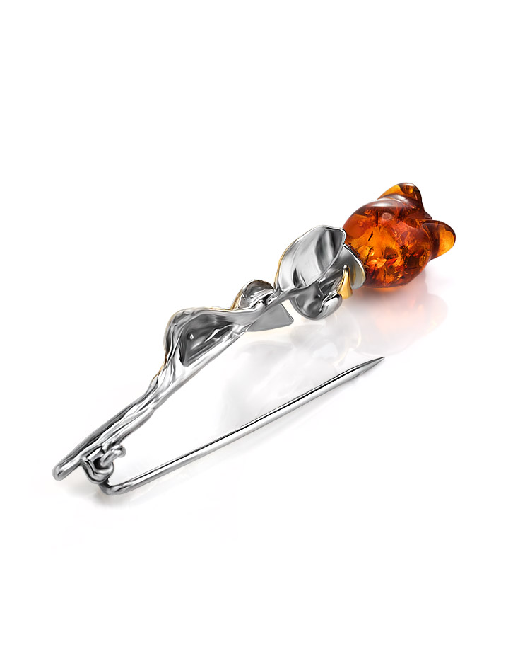 Изящная брошь с натуральным коньячным янтарём «Роза»