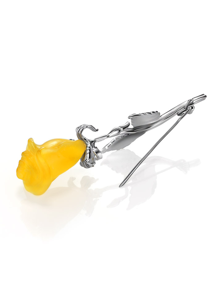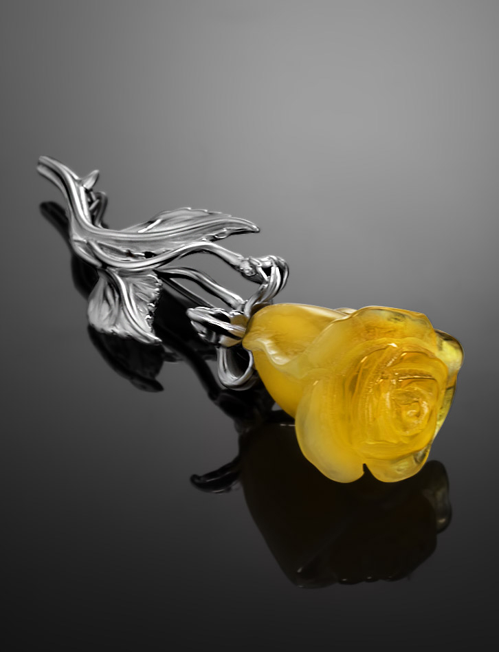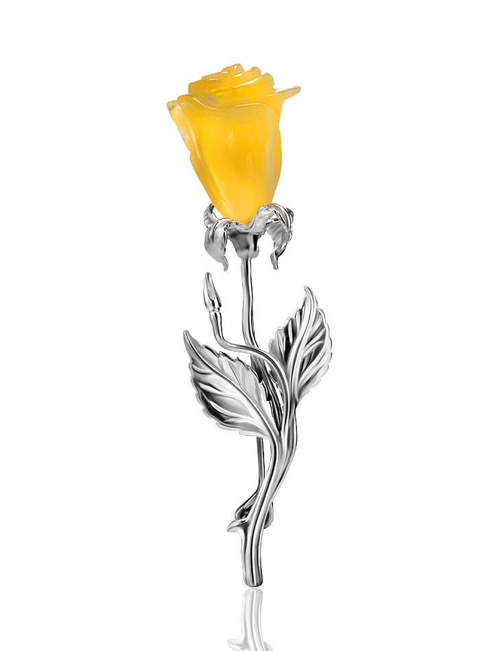 Изящная брошь с натуральным янтарём медового цвета «Роза»