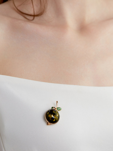 Изящная брошь с натуральным янтарём зелёного цвета «Вереск»