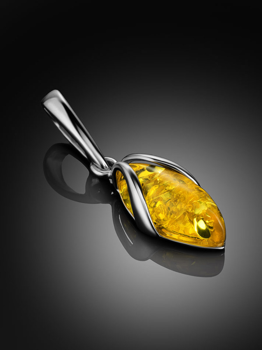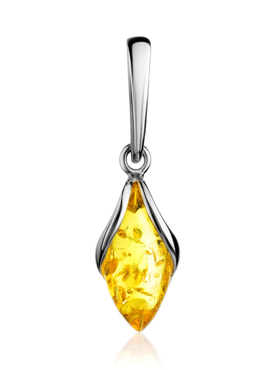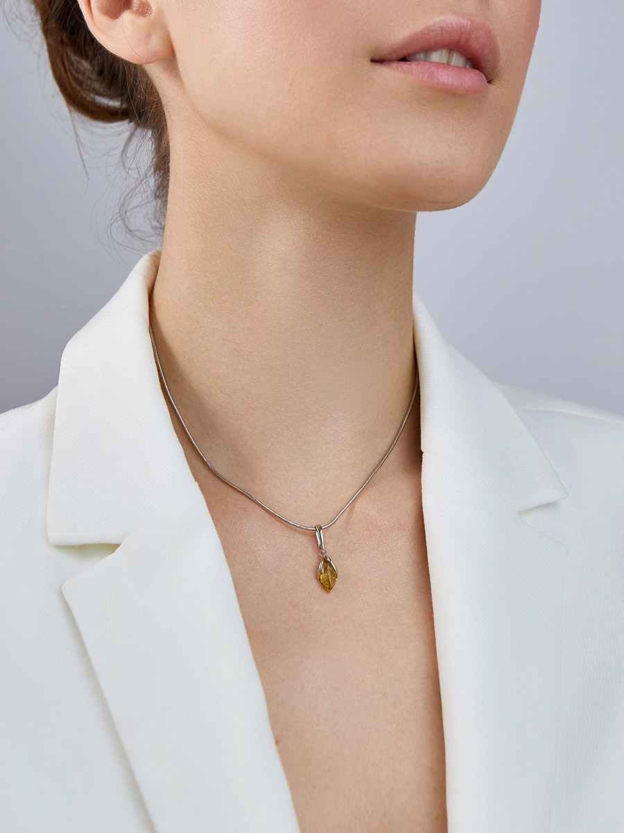 Изящная подвеска с лимонным янтарём «Подснежник»