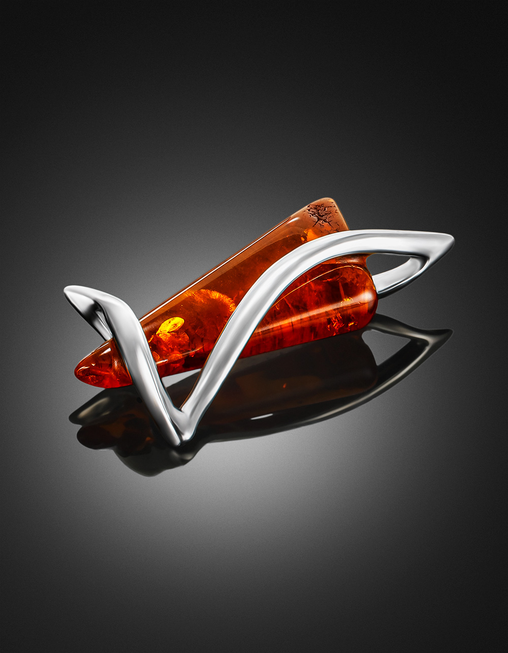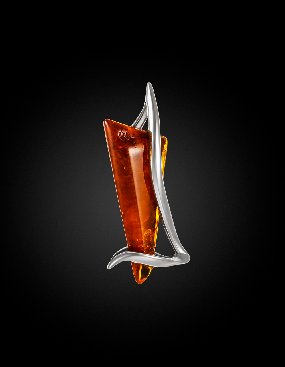 Изящная подвеска в оригинальном дизайне с натуральным коньячным янтарём