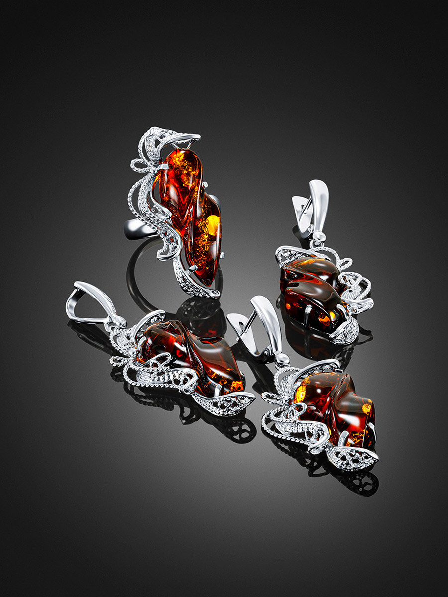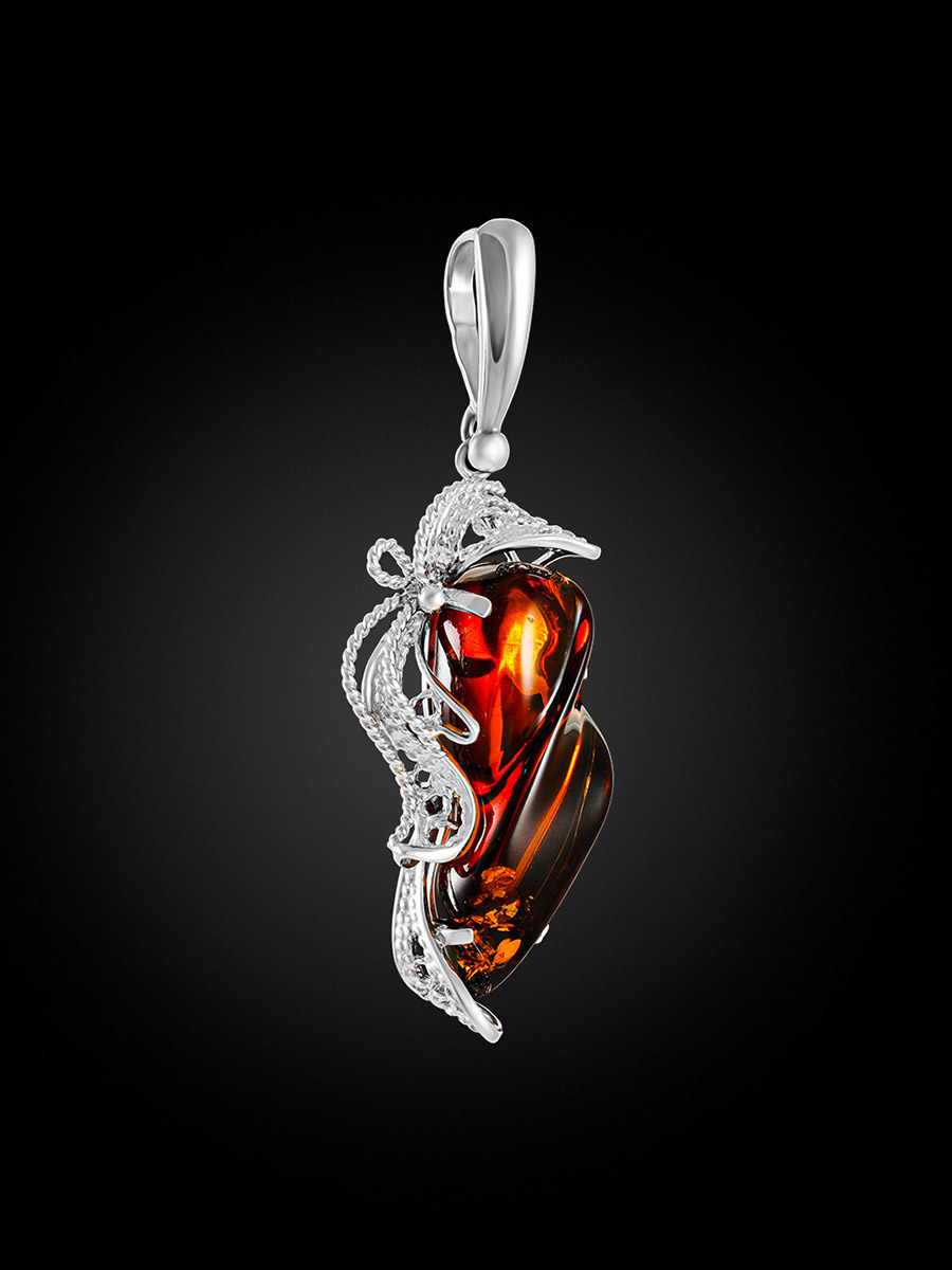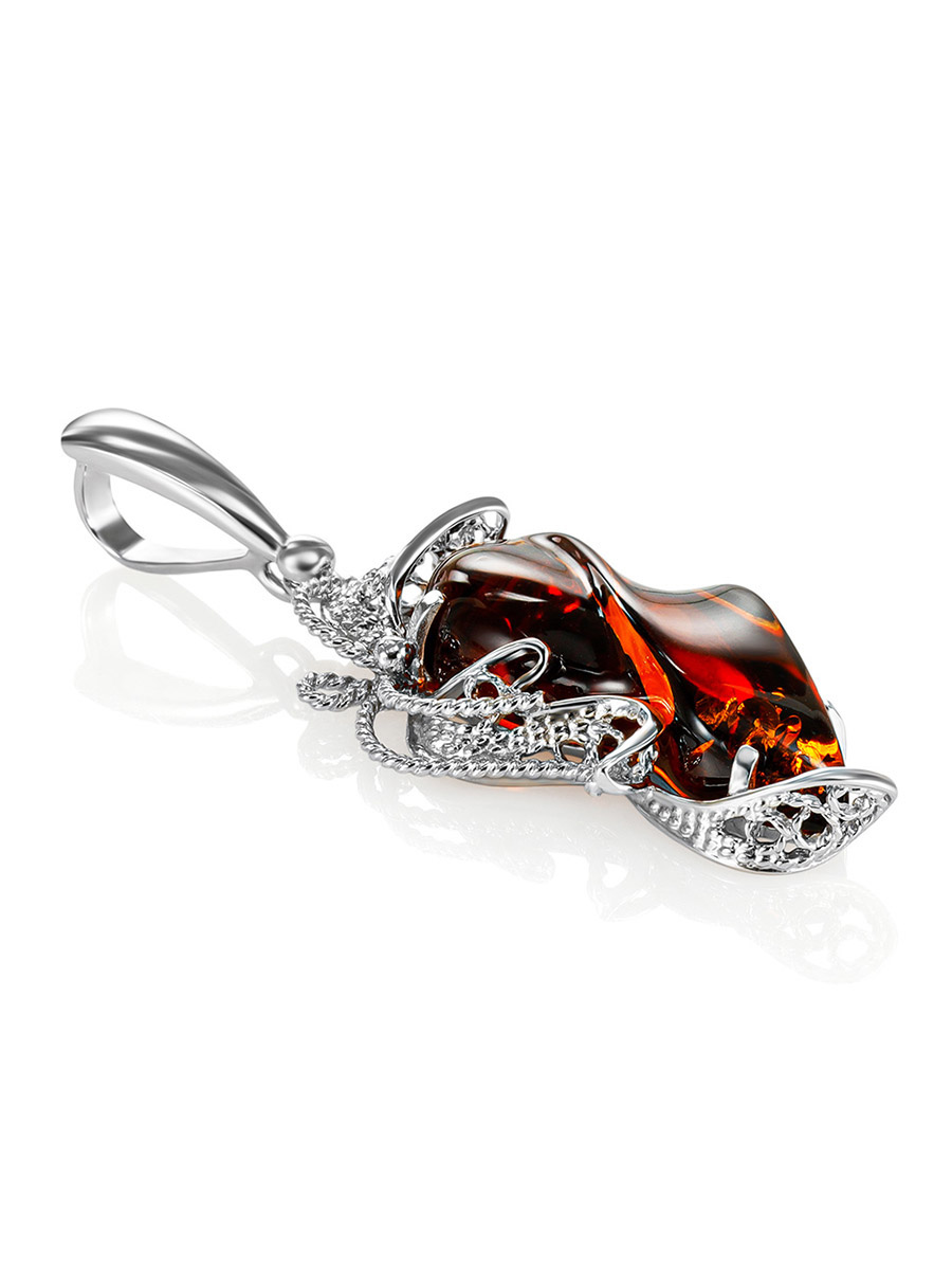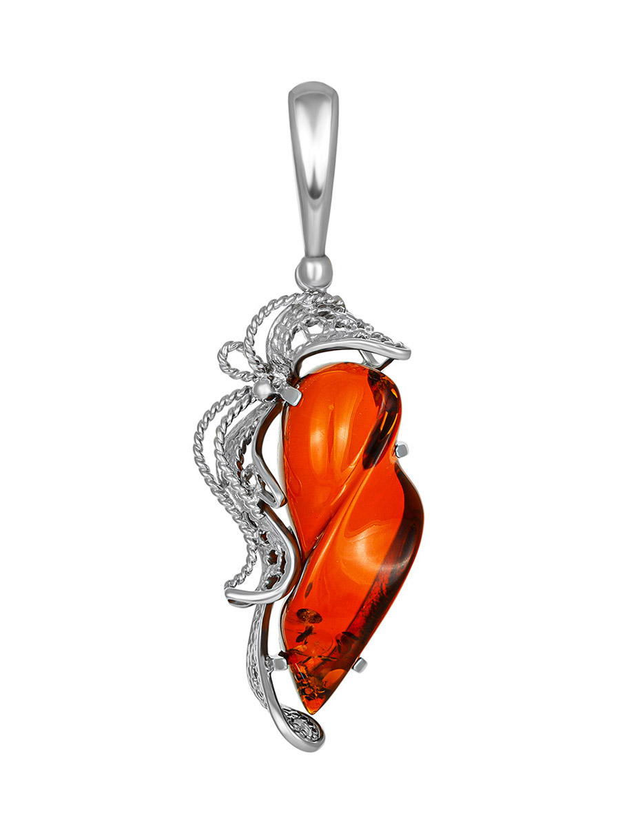 Изящная удлинённая подвеска из натурального янтаря «Филигрань»