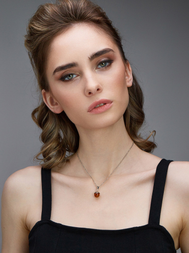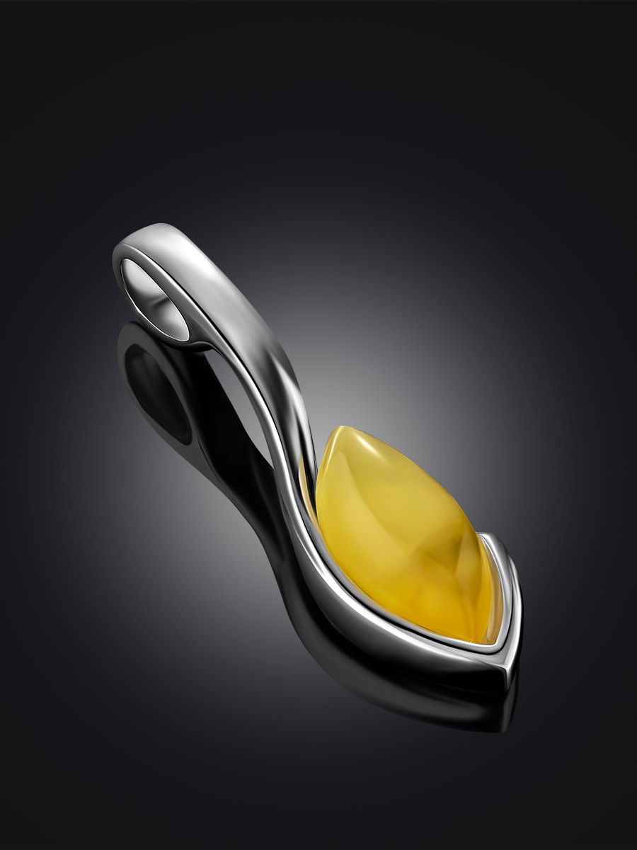 Изящная удлиненная подвеска с янтарем медового цвета «Адажио»