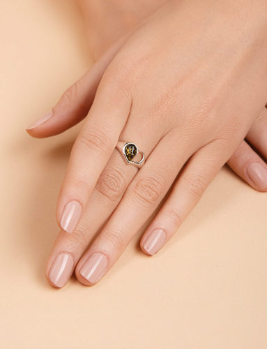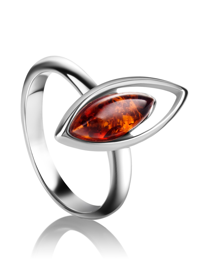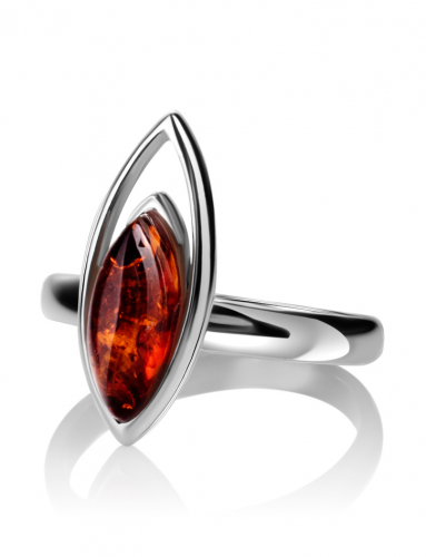 Изящное кольцо «Акация» с натуральным коньячным янтарём