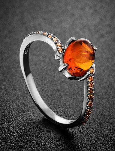 Изящное кольцо «Лиссабон» с янтарём коньячного цвета