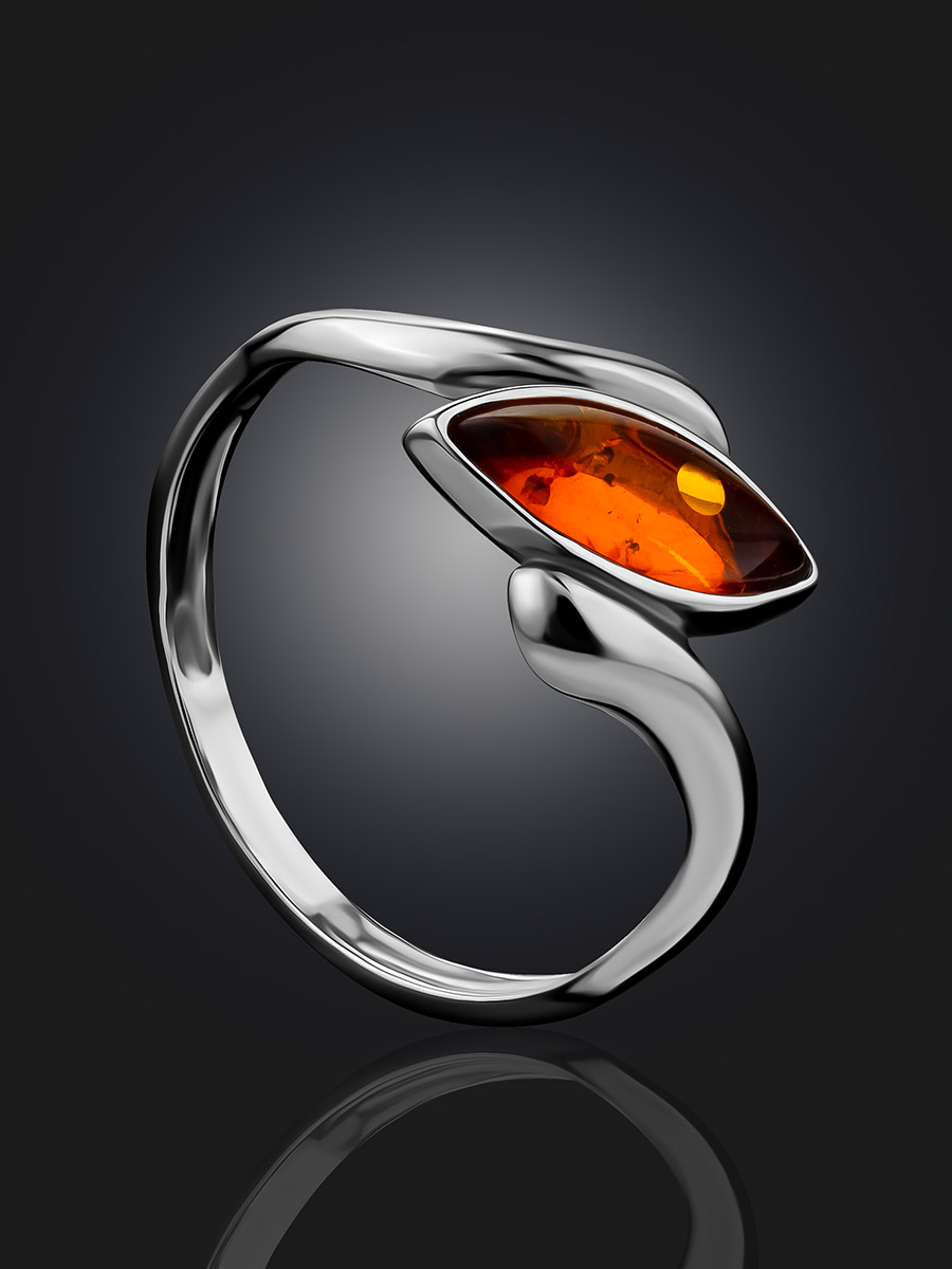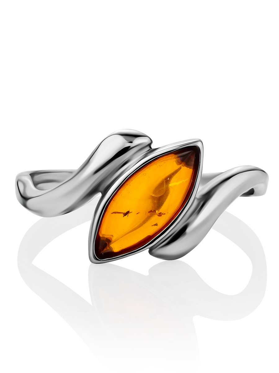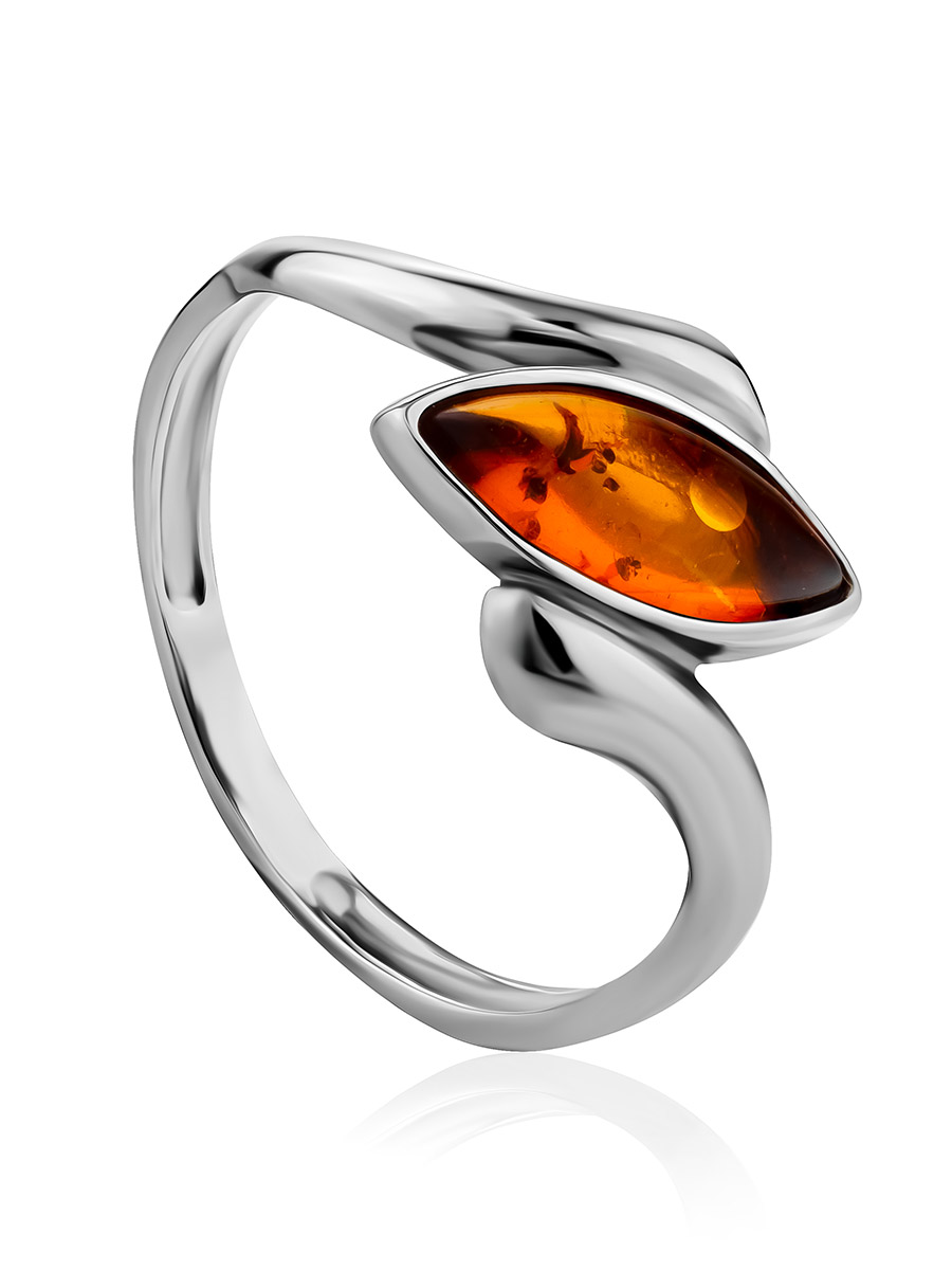 Изящное кольцо с коньячным янтарем «Андромеда»