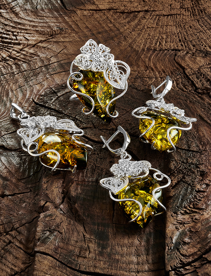 Размеры камня (мм): 26х17х6 Вес и..показатьзделия (г): 8.46 Цвет: зеленый Материалы: Натуральный янтарь / Серебро 925° Коллекция: Филиграньзделия (г): 8.46 Ошибка при загрузке данных! (https://amberholl.ru/opt/catalog/silver_rings_with_amber/b_amber_ring_110303/)