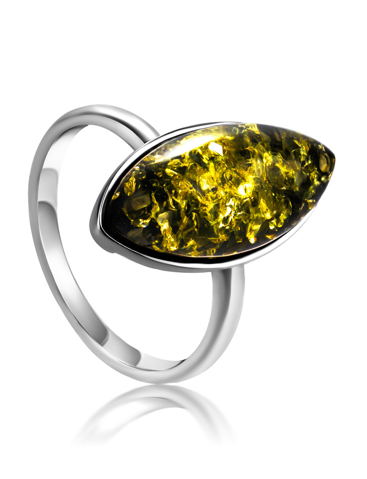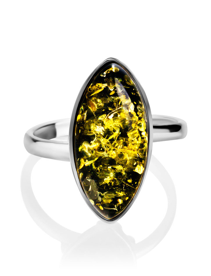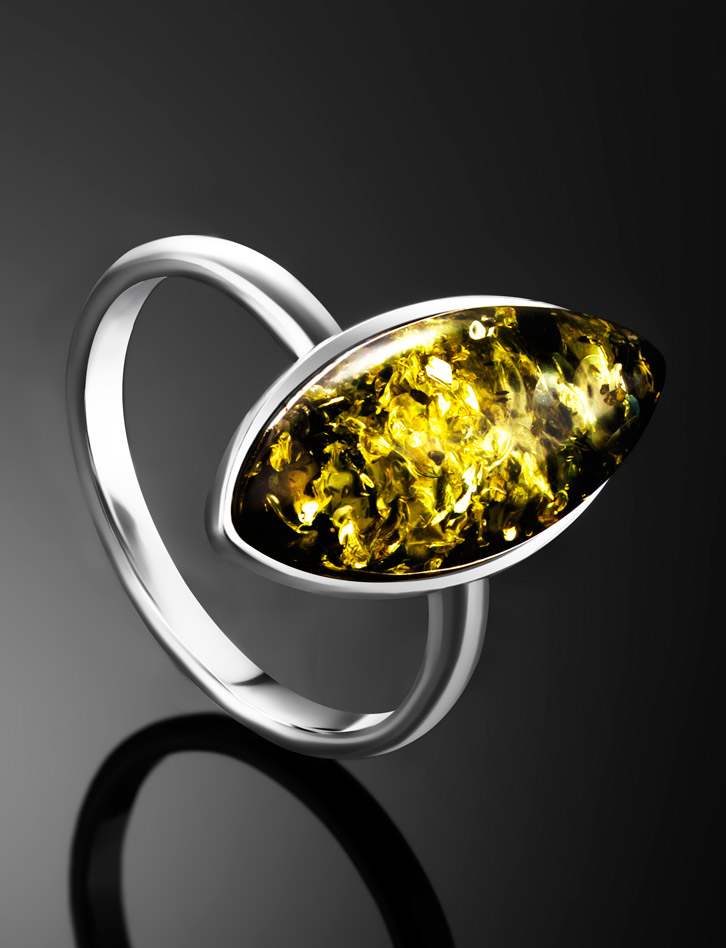 Изящное кольцо с натуральным янтарем зелёного цвета «Амарант»