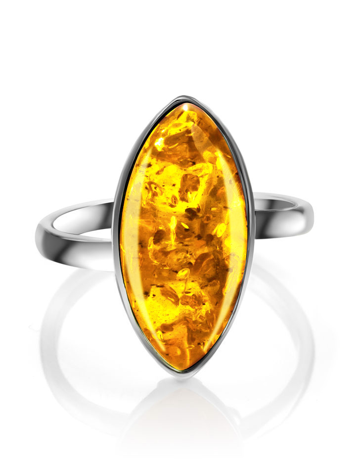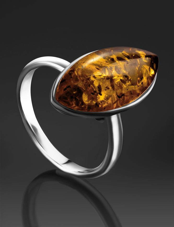 Изящное кольцо с натуральным золотисто-коньячным янтарём «Амарант»