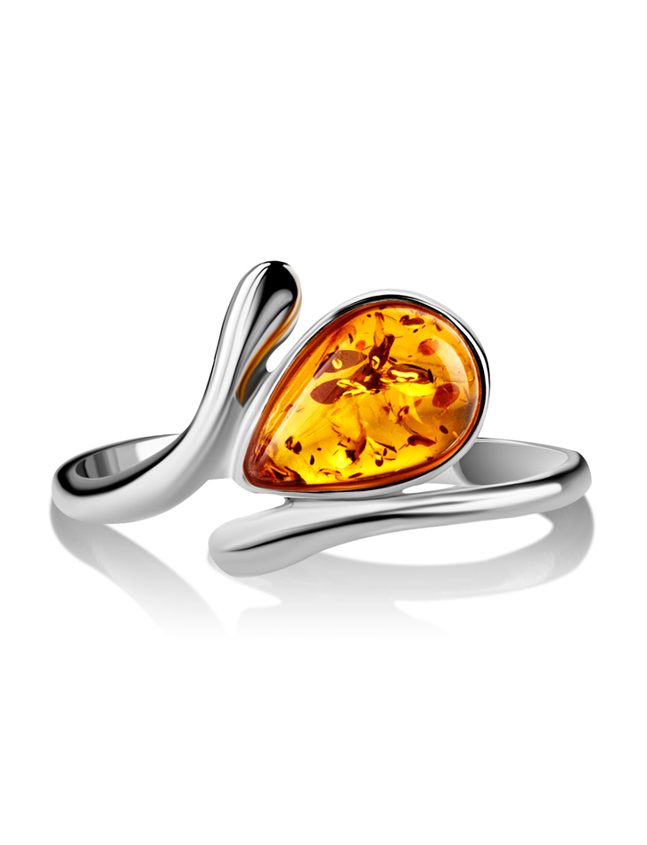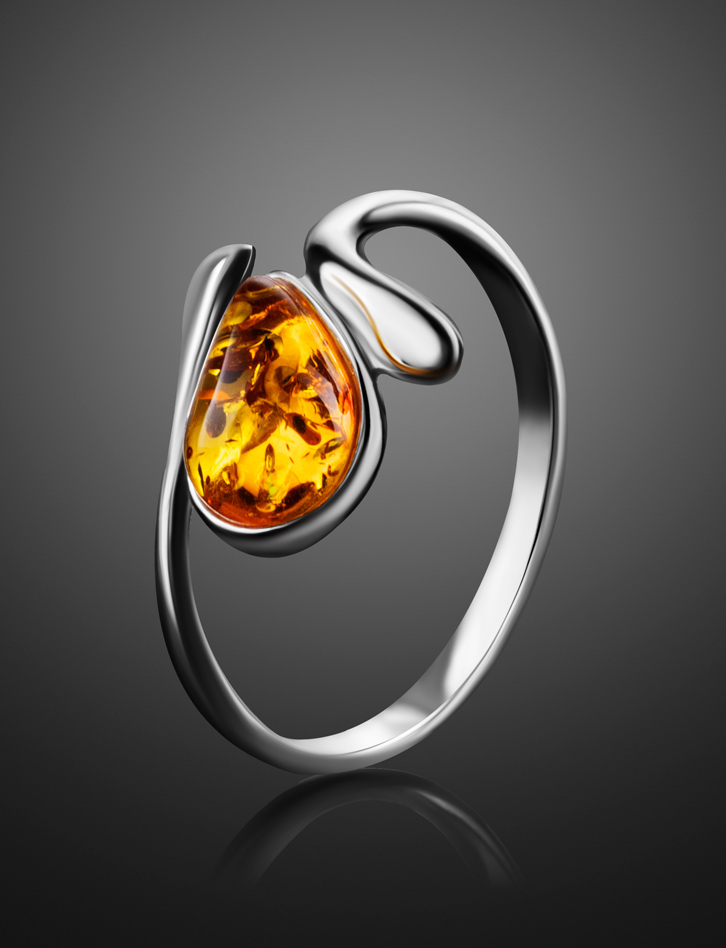 Изящное кольцо с золотистым янтарём «Гермия»