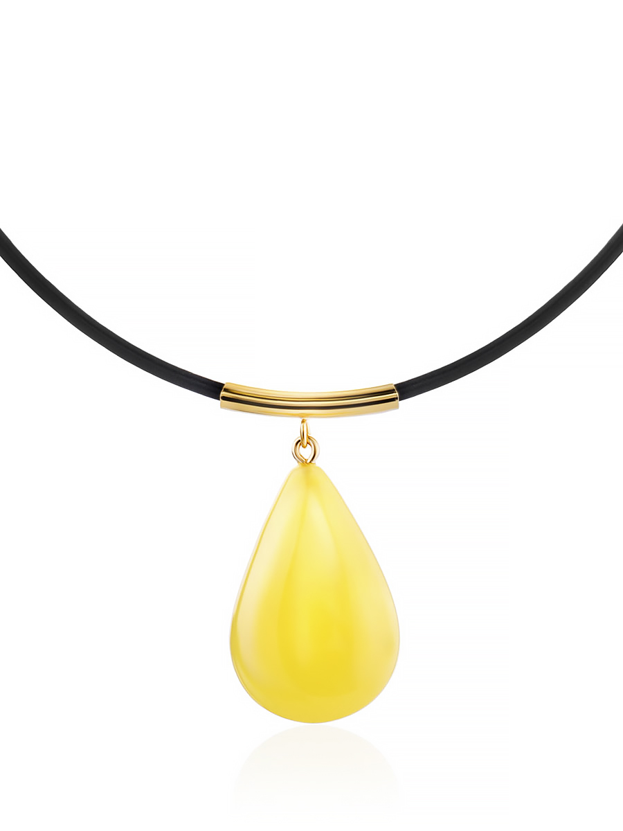 Изящное колье с кулоном-капелькой из натурального янтаря медового цвета «Эльза»