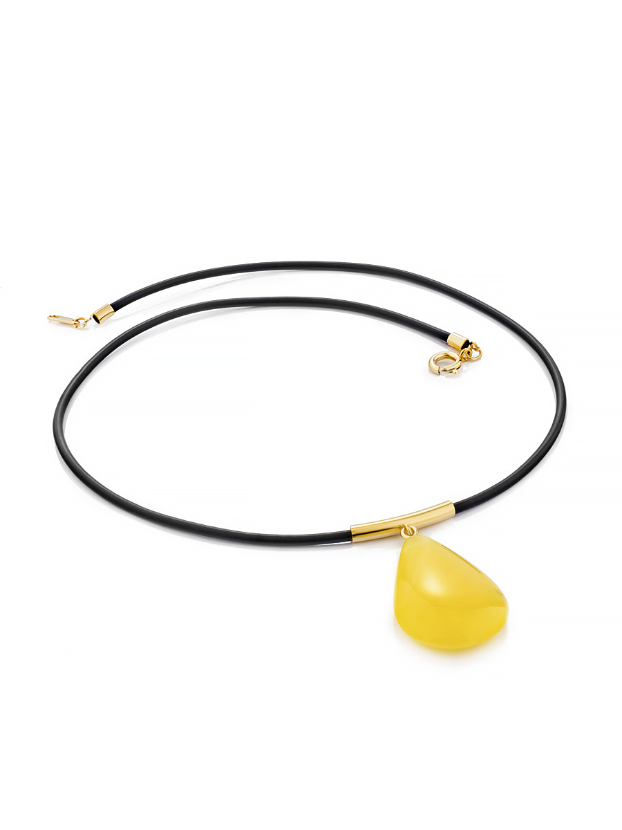 Размеры камня (мм): 25х14х5 Вес и..показатьзделия (г): 4.5 Размер / длина (см): 40 Цвет: медовый Материалы: Натуральный янтарь / КаучукИзящный кулон из натурального янтаря медового цвета на каучуковом шнурке «Эльза»: 106107224_x000D_