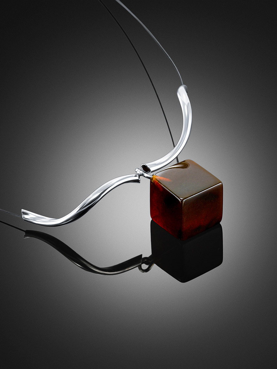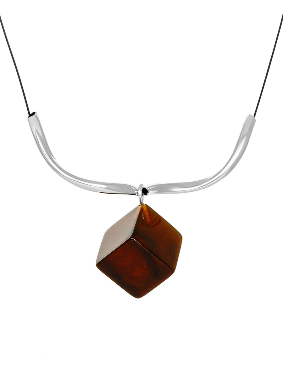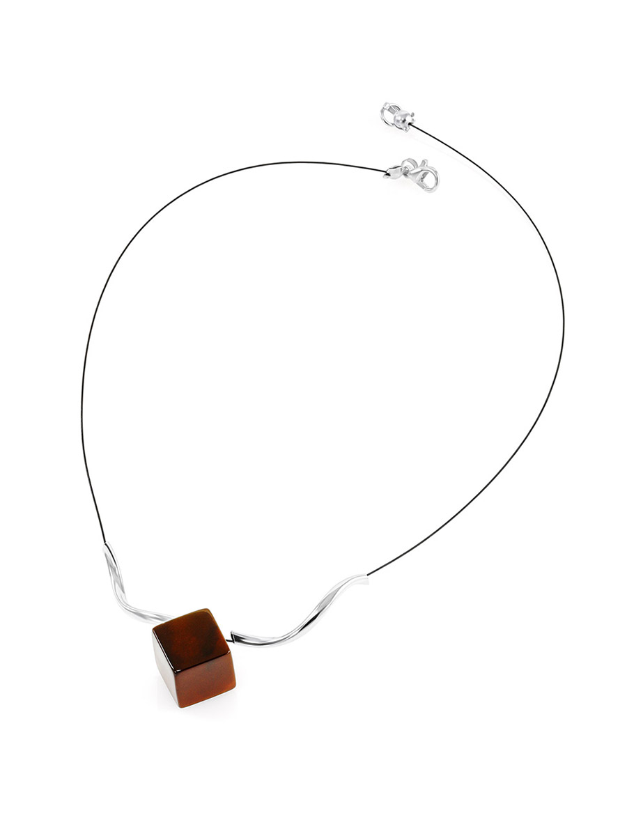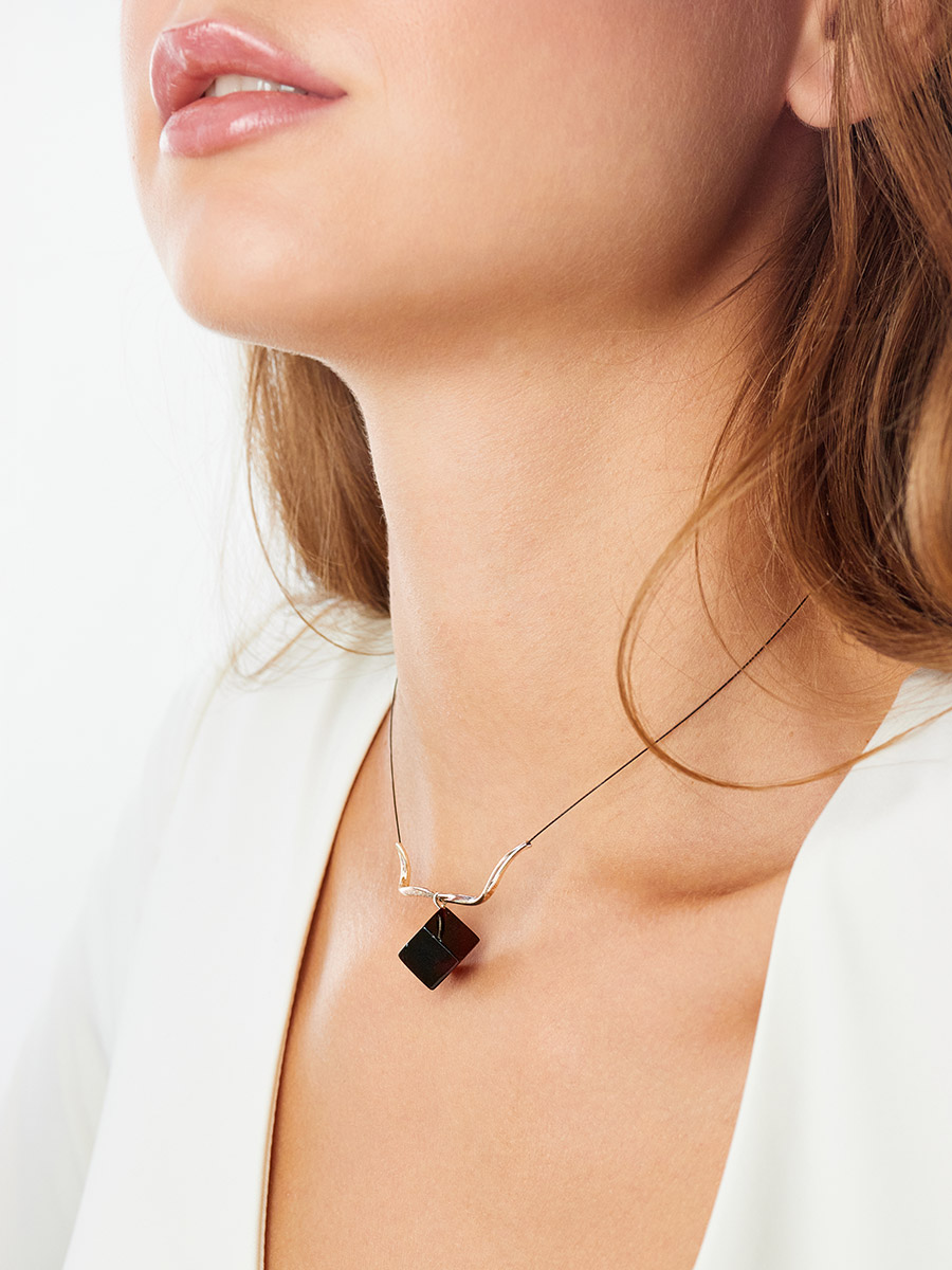 Изящное колье-струна «Рафинад» с тёмно-вишнёвым янтарём