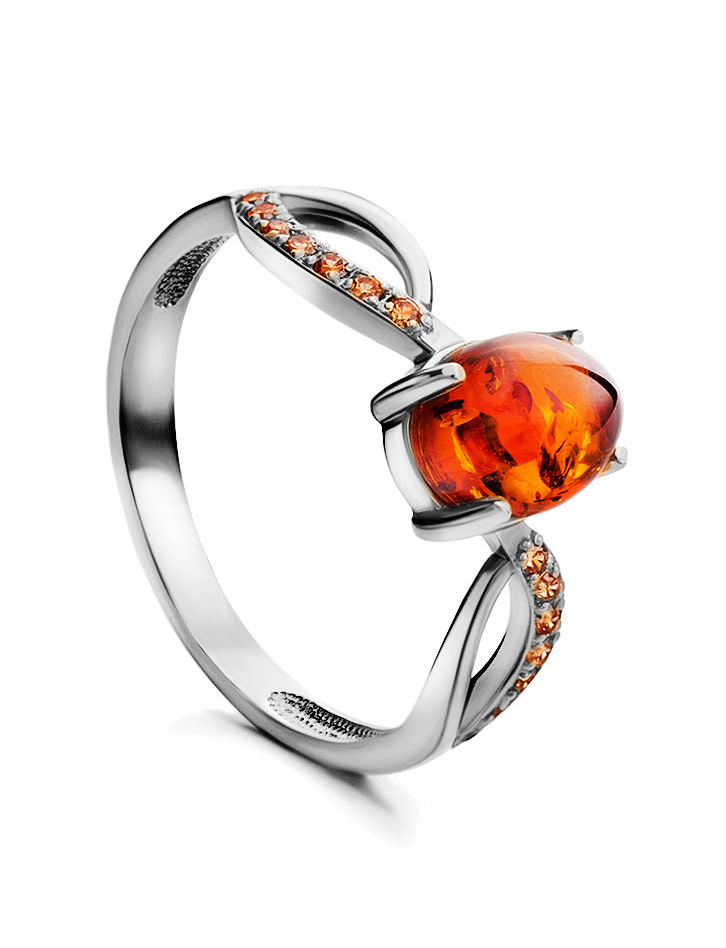 Изящное тонкое кольцо с натуральным янтарём «Ренессанс»