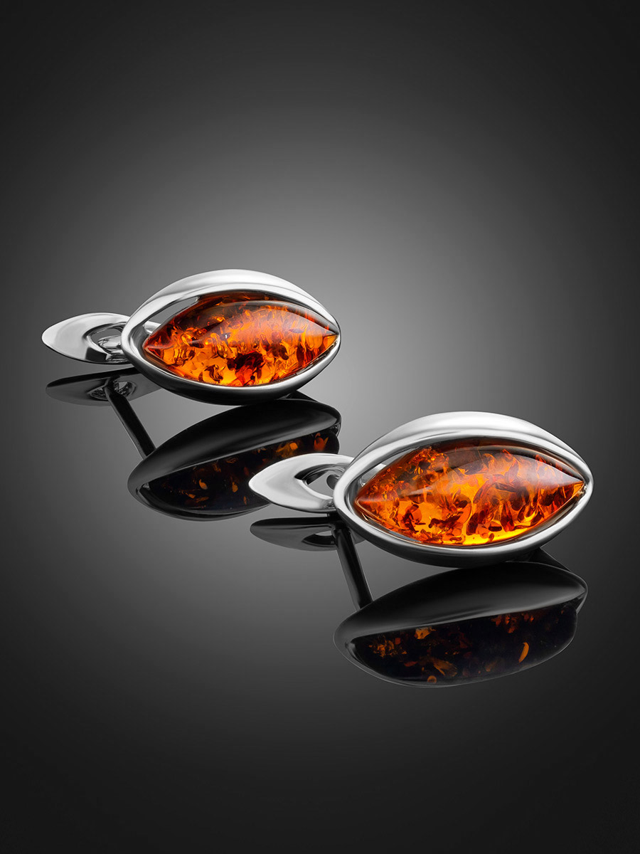 Изящные аккуратные серьги с натуральным коньячным янтарём «София»
