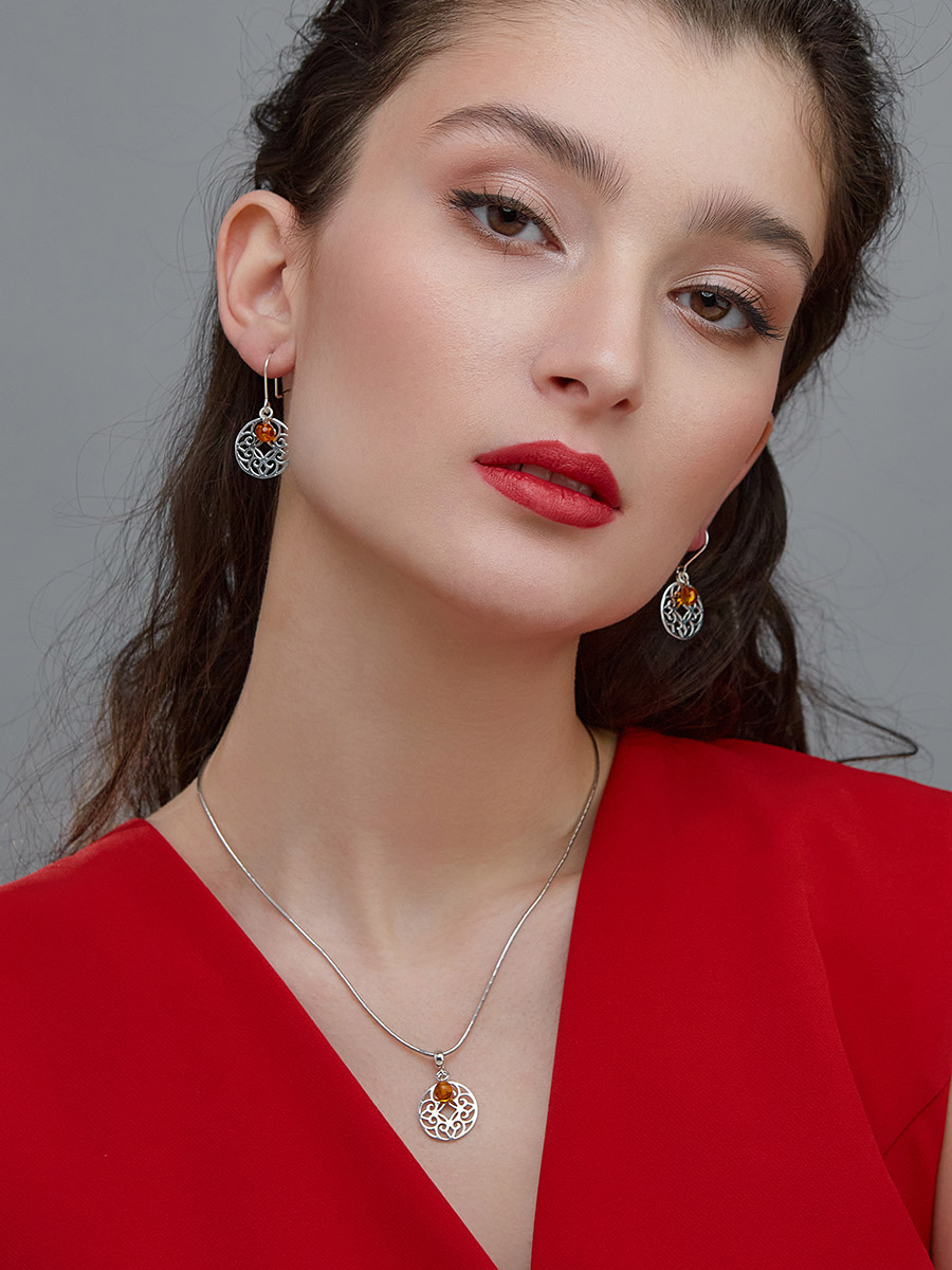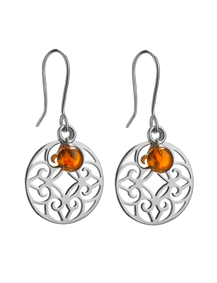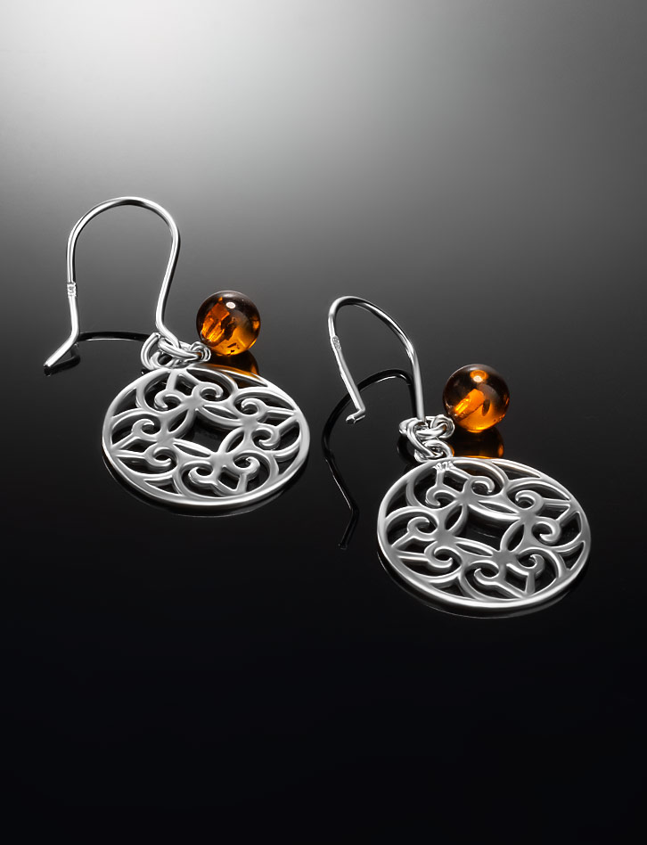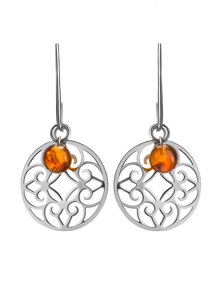 Изящные ажурные серьги «Арабеска» с натуральным балтийским янтарём