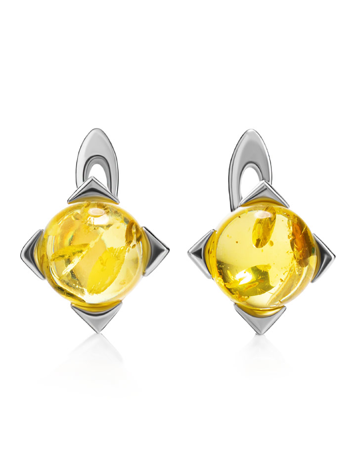 Изящные миниатюрные серьги с янтарем лимонного цвета «Рондо»