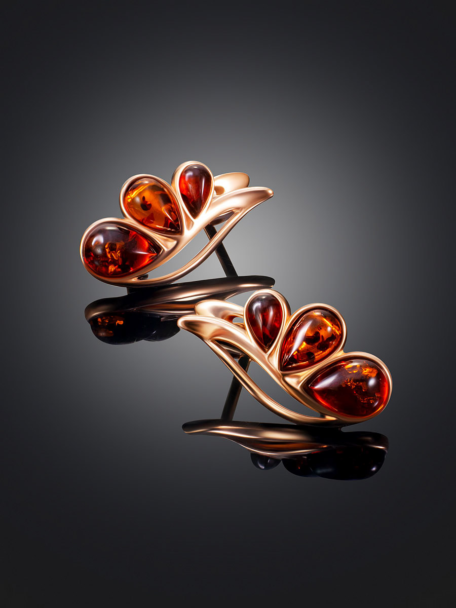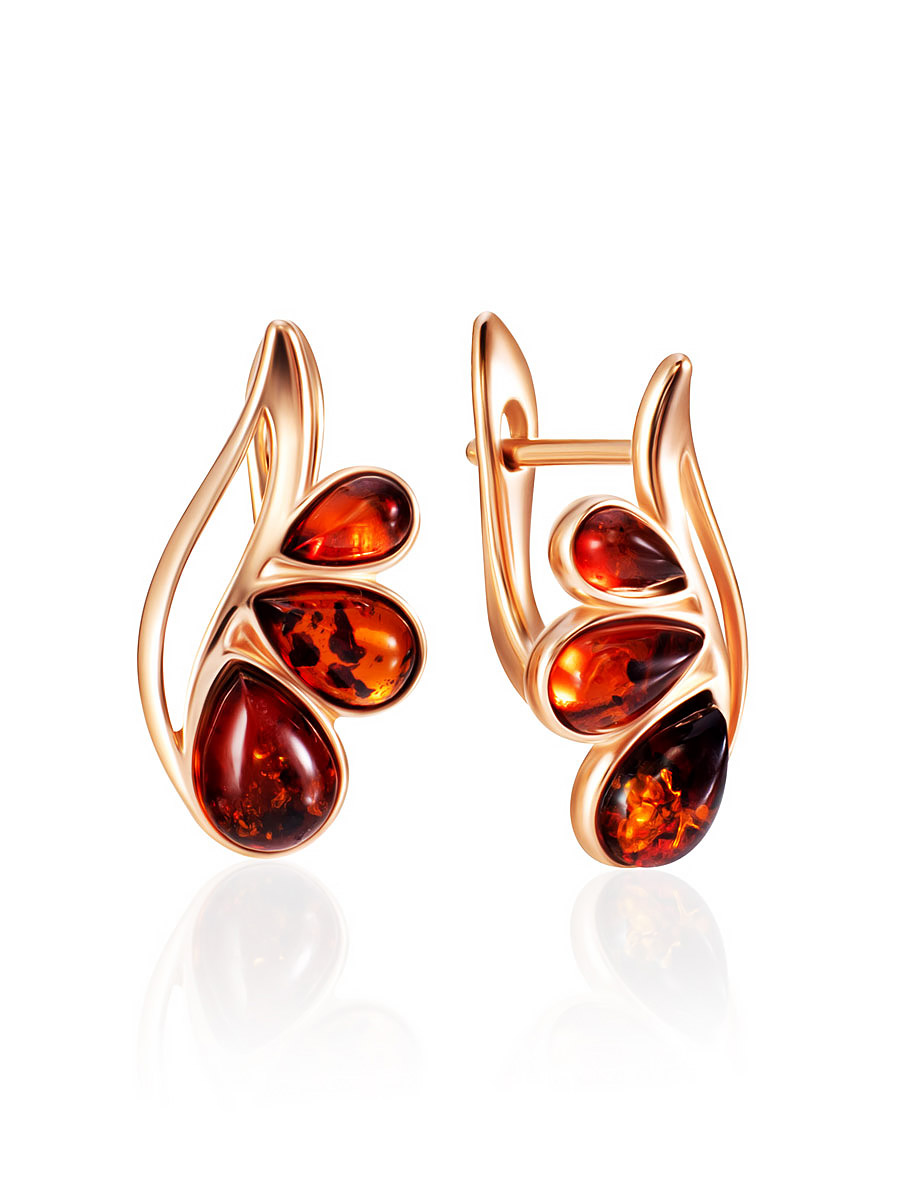 Изящные позолоченные серьги «Райская птица» с вишнёвым янтарём