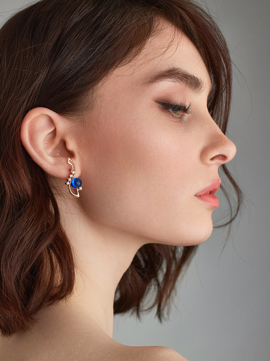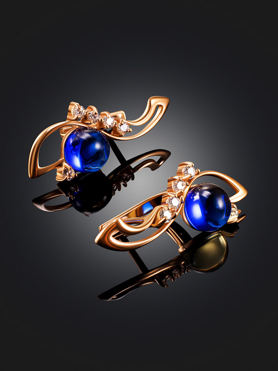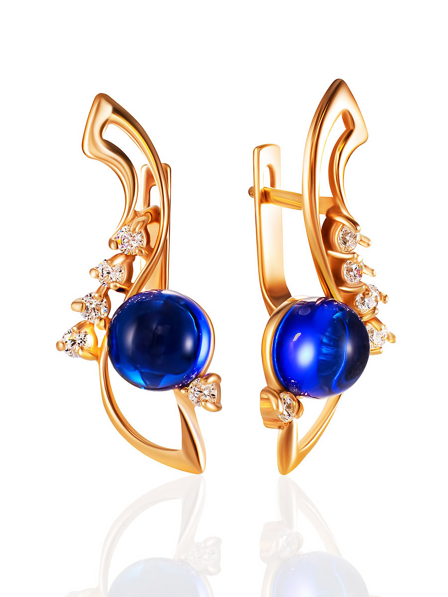 Изящные позолоченные серьги с тонированным янтарём синего цвета «Ноктюрн»