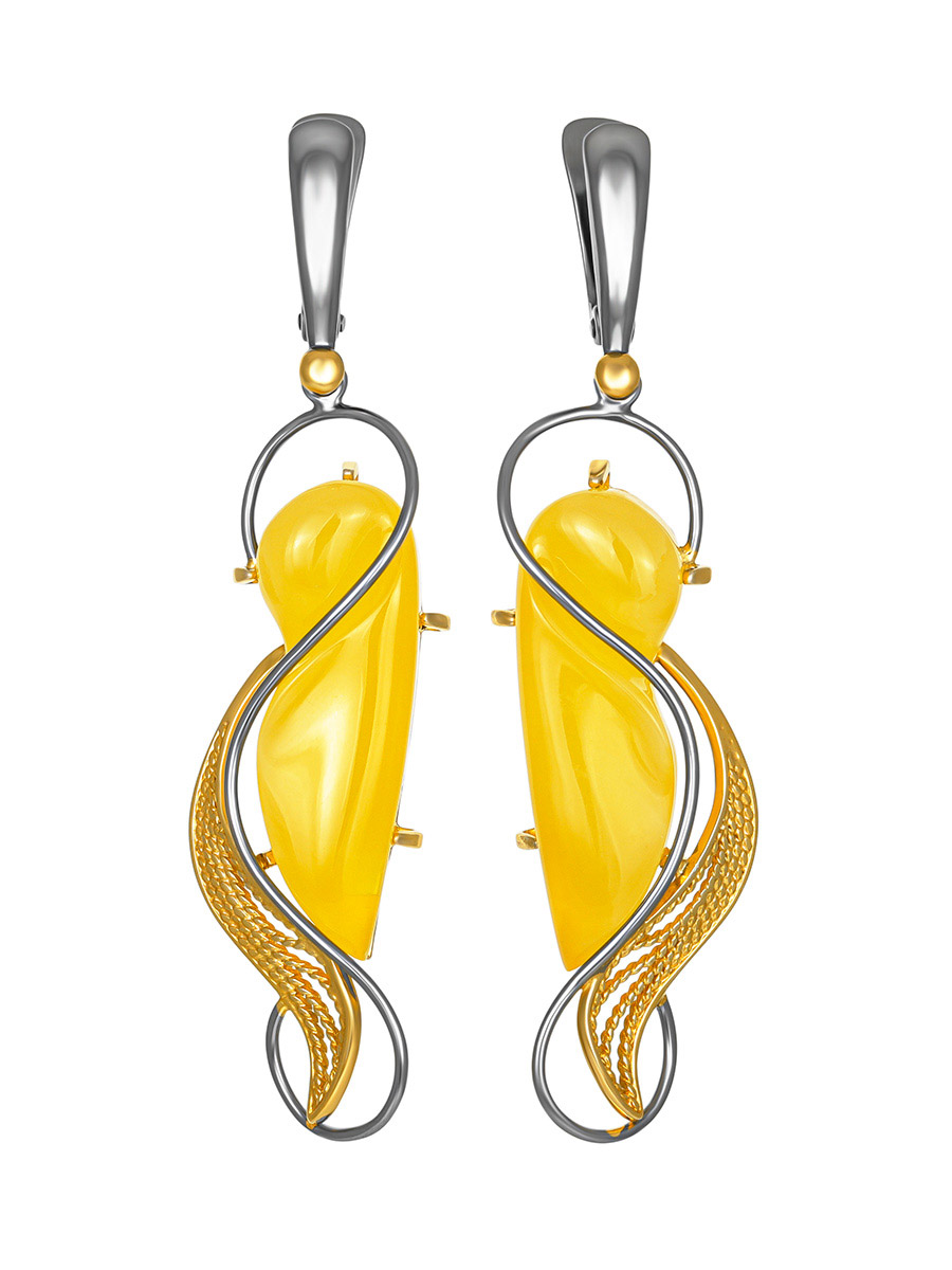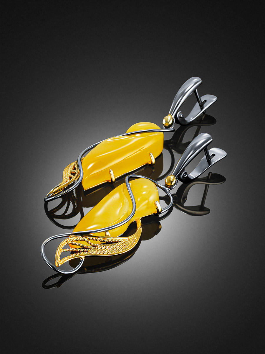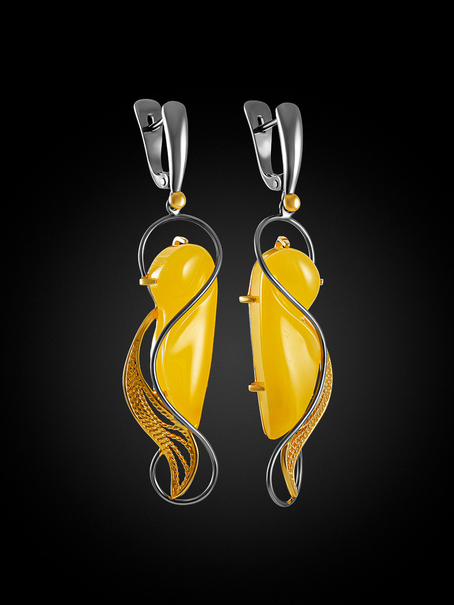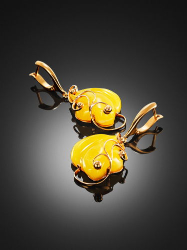 Изящные серьги «Филигрань» с натуральным медовым янтарём