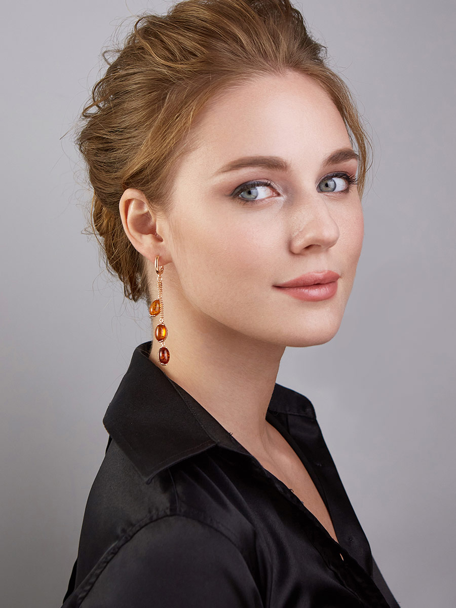 Изящные серьги из коньячного янтаря «Касабланка»