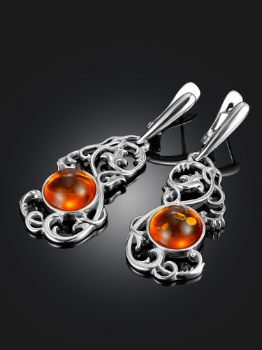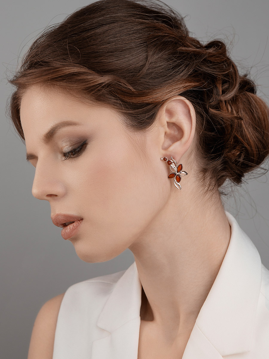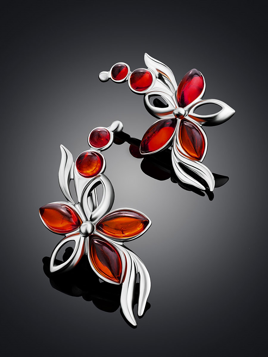 Изящные серьги из натурального балтийского янтаря вишнёвого цвета «Вербена»