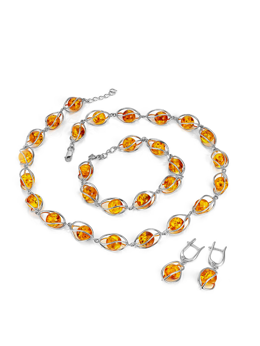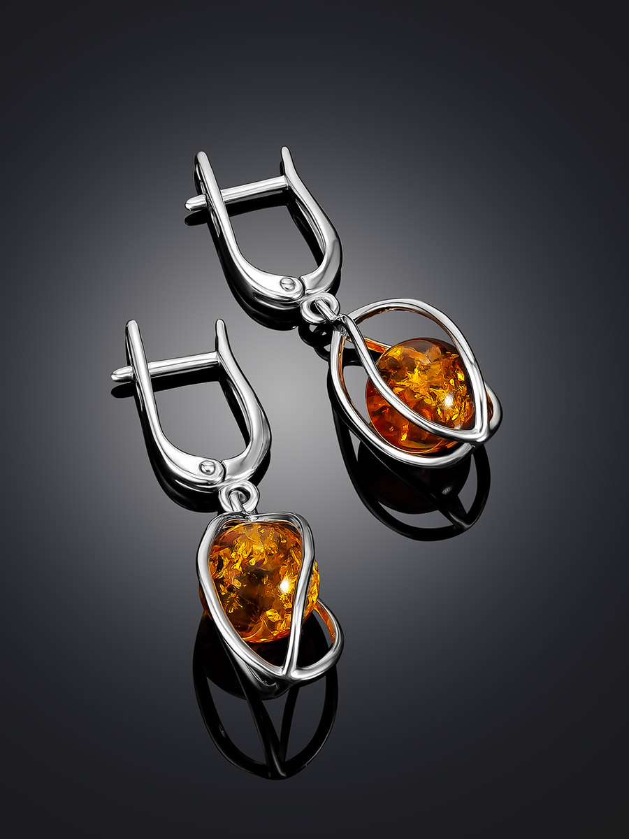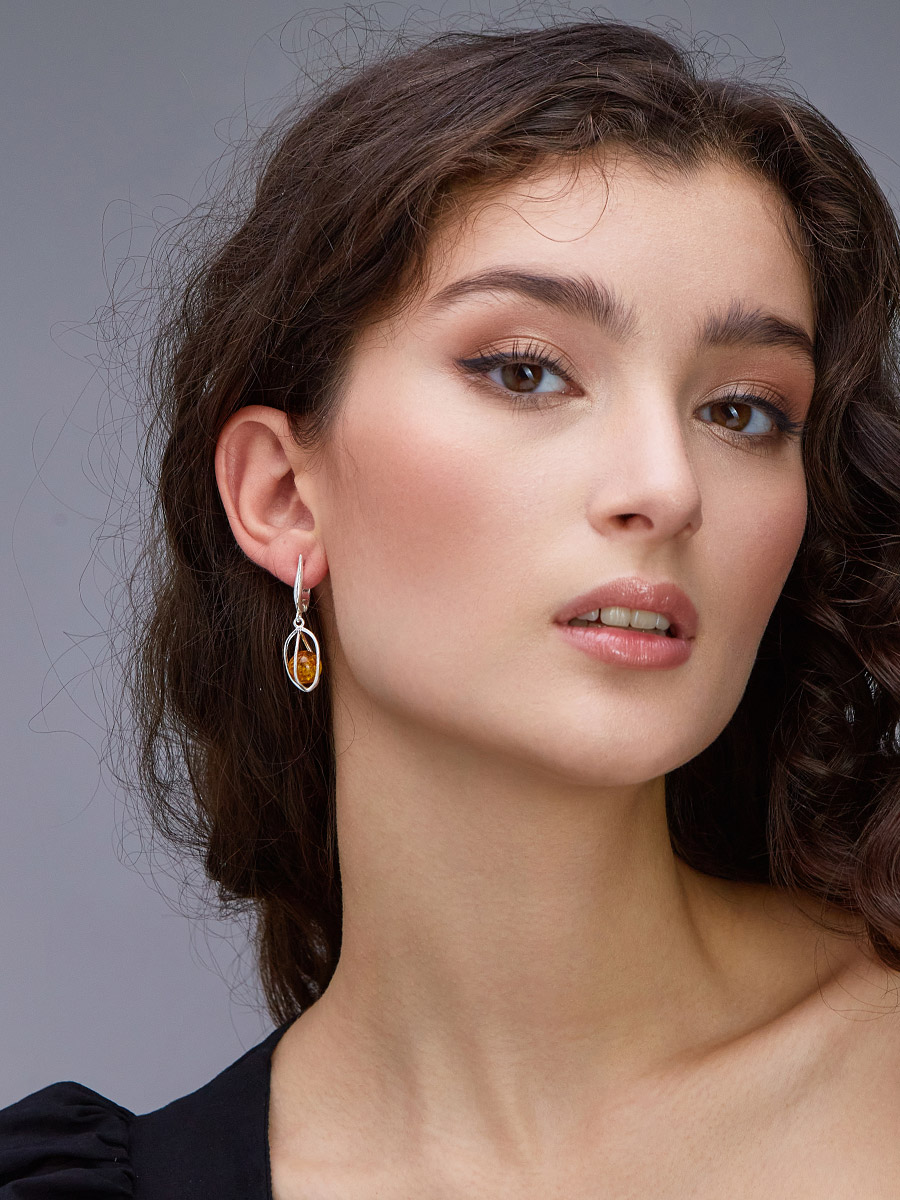 Изящные серьги из натурального янтаря коньячного цвета «Алжир»