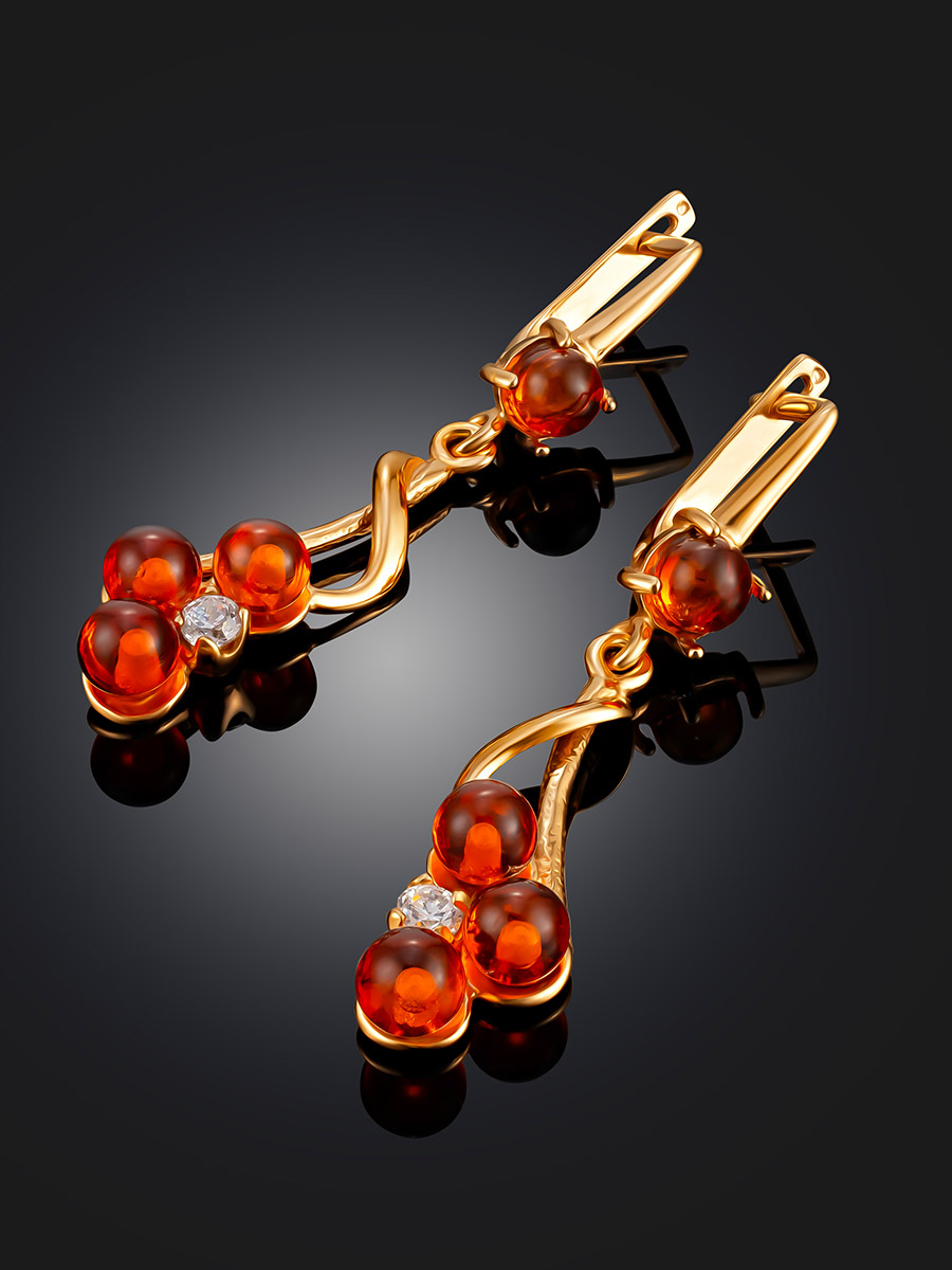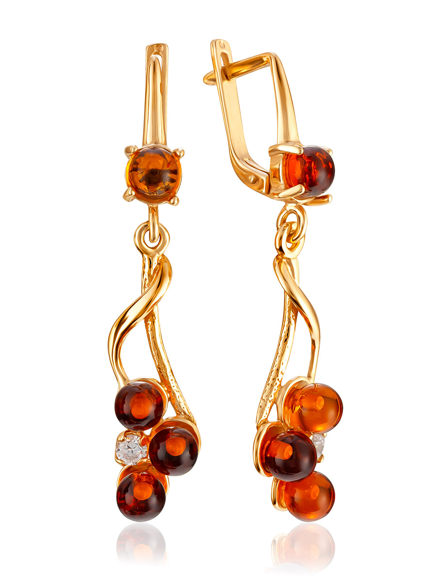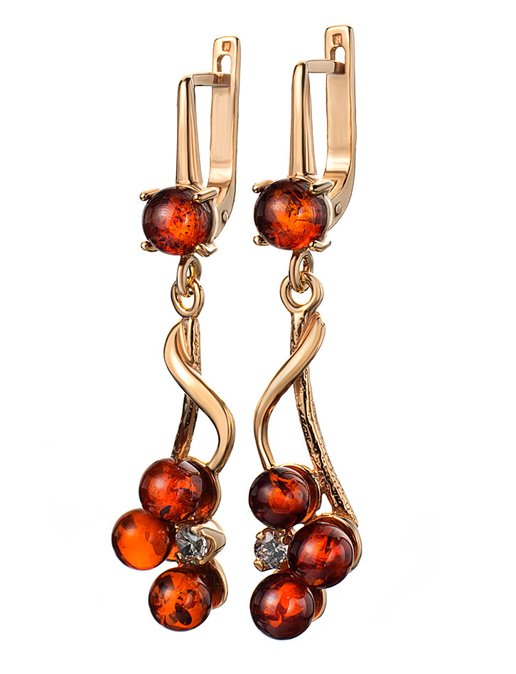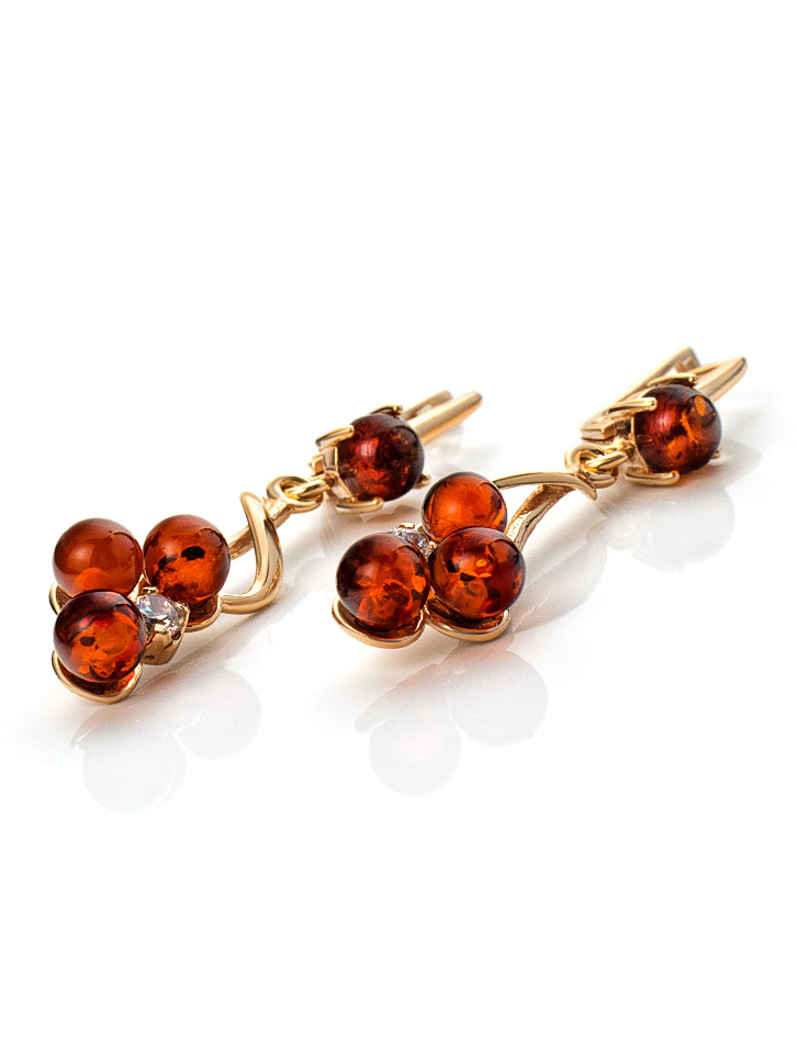 Изящные серьги из натурального янтаря с фианитами «Мимоза»