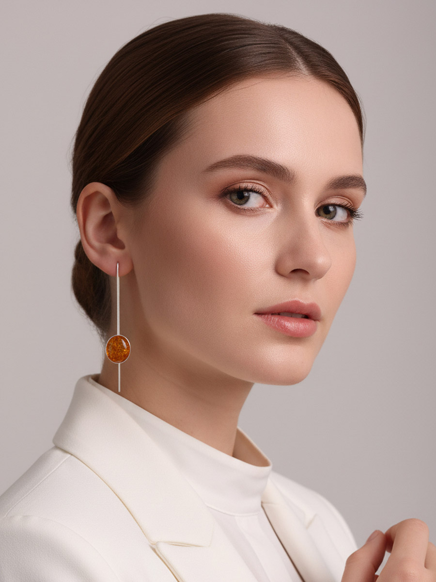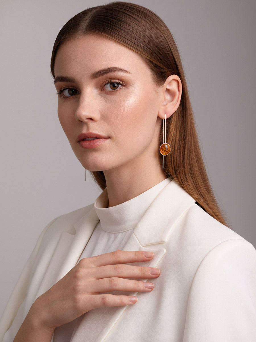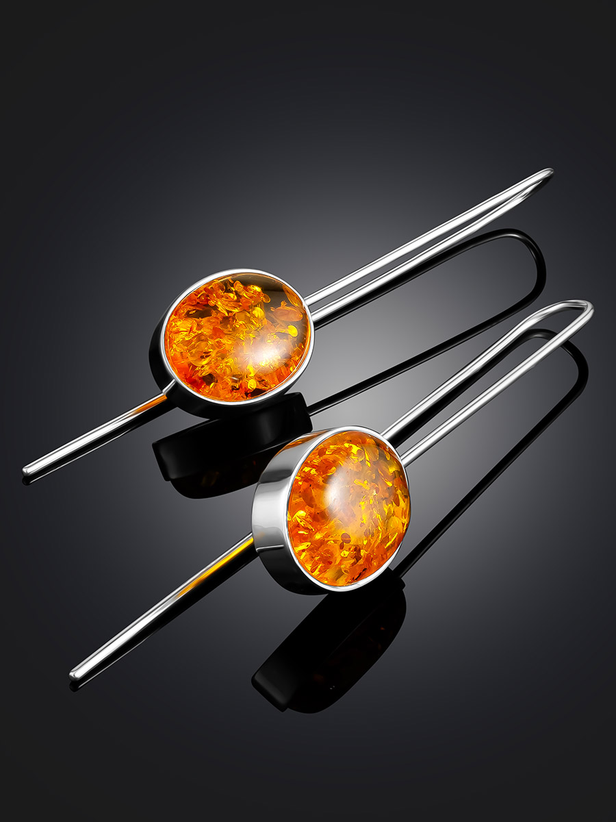 Изящные серьги-крючки с золотистым янтарём «Притяжение»