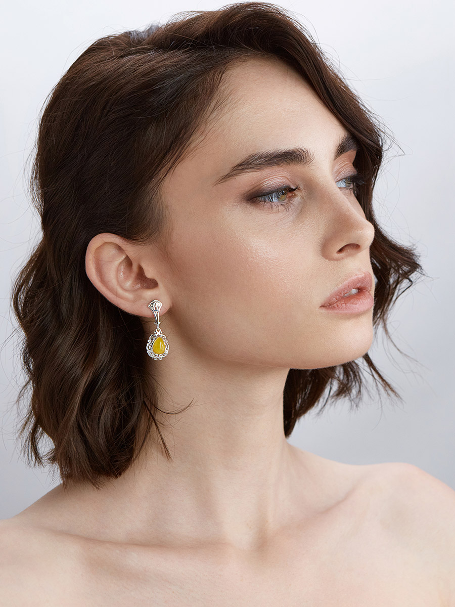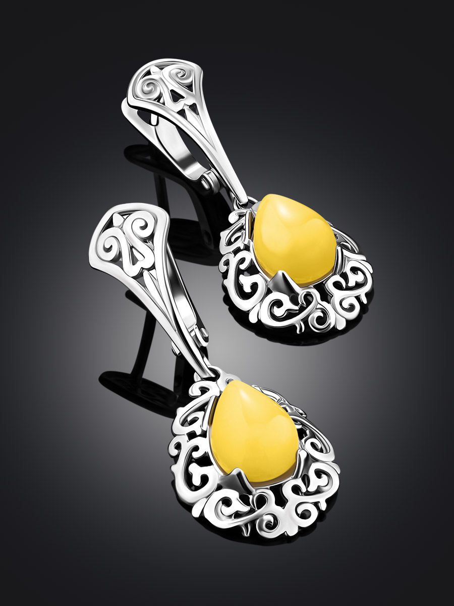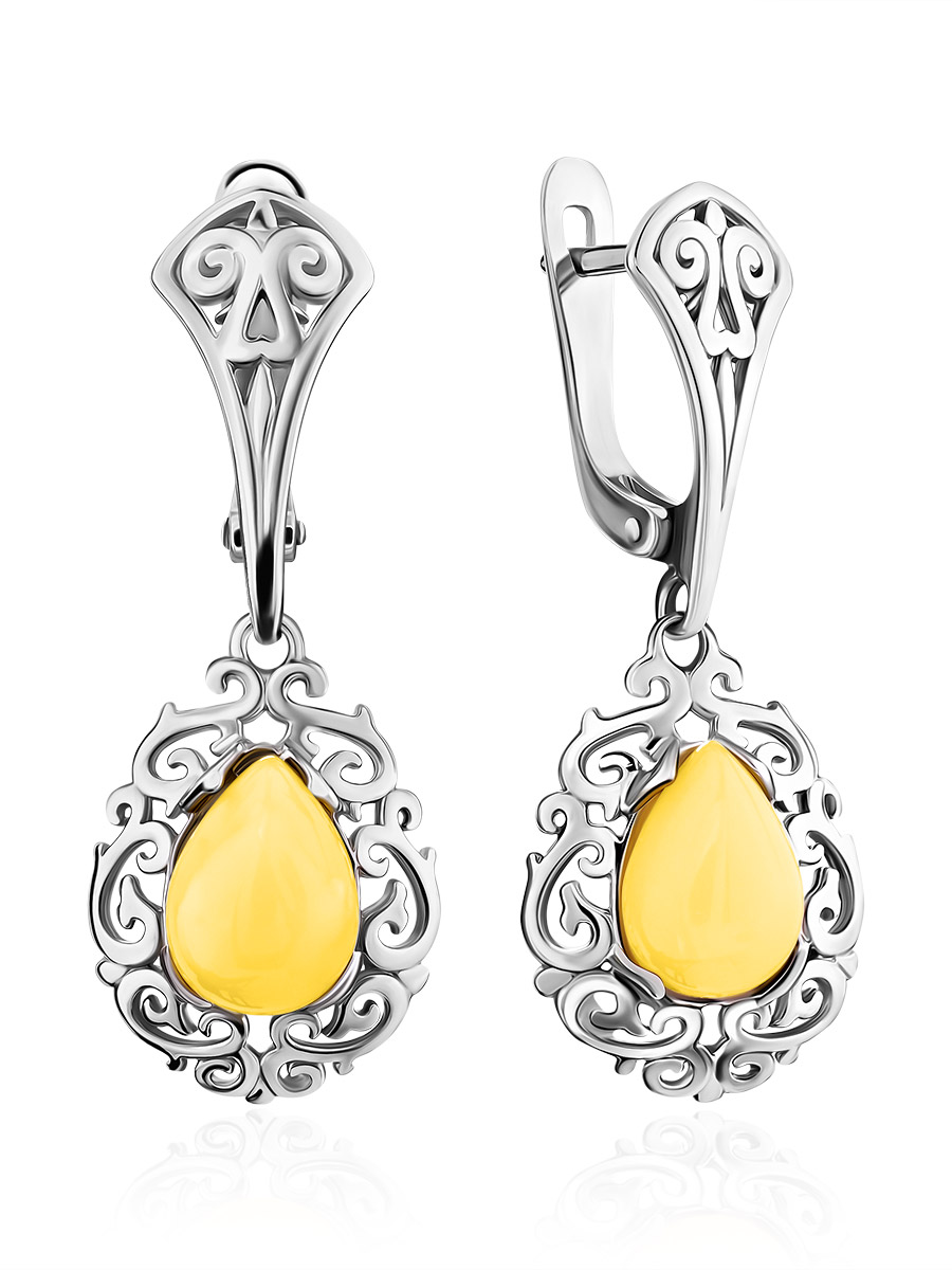 Изящные серьги «Луксор» с натуральным молочно-медовым янтарём