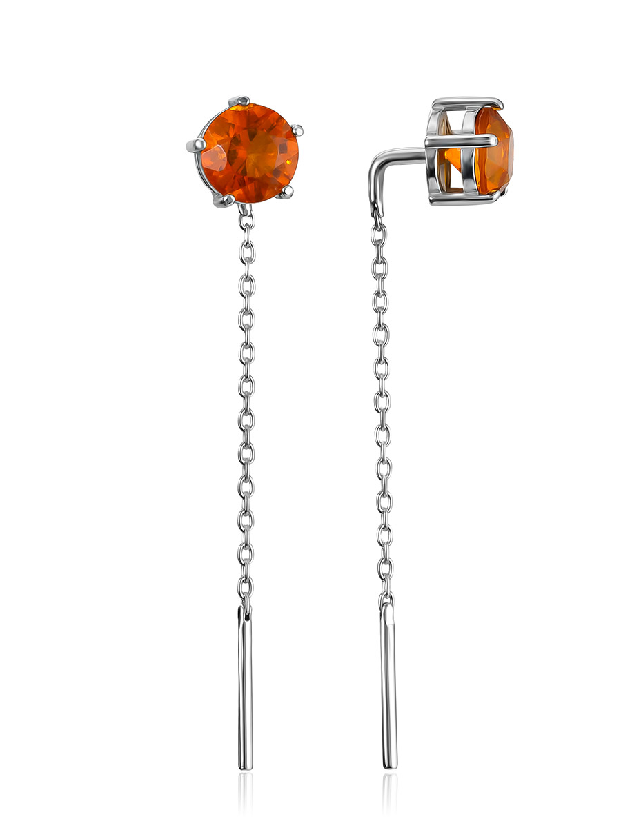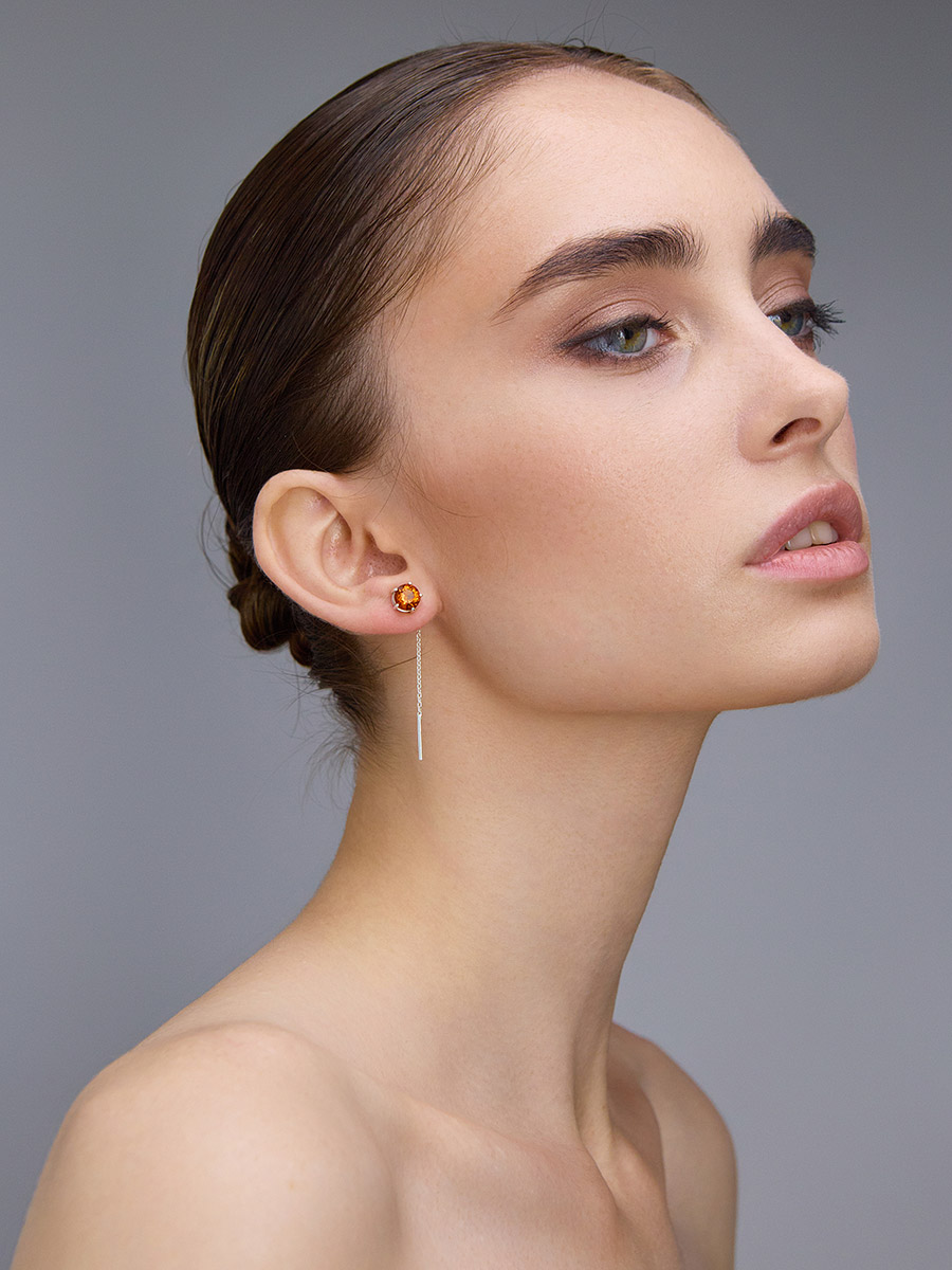Изящные серьги-продёвки с гранёным коньячным янтарём «Баккара»