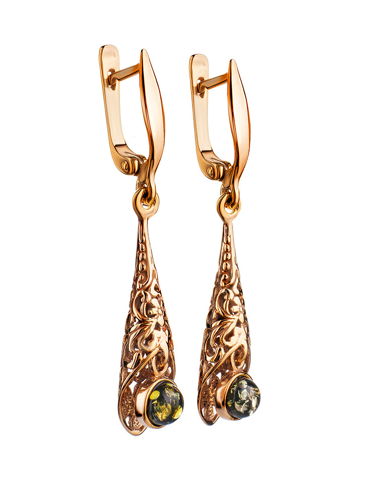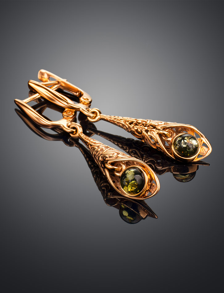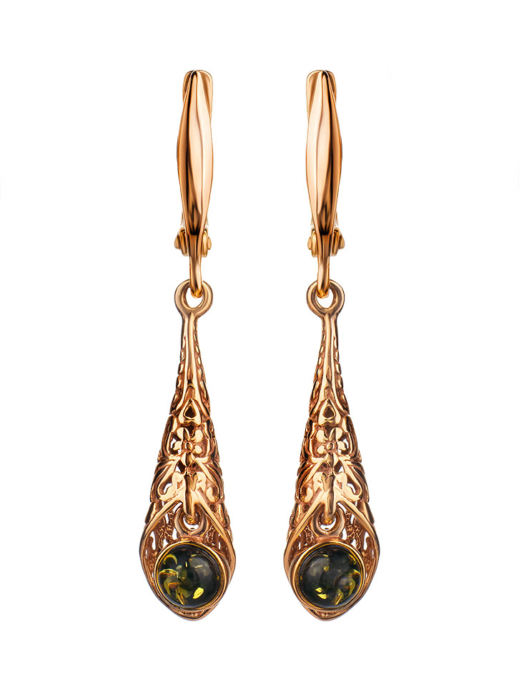 Изящные серьги «Роксана» с натуральным балтийским янтарём зелёного цвета