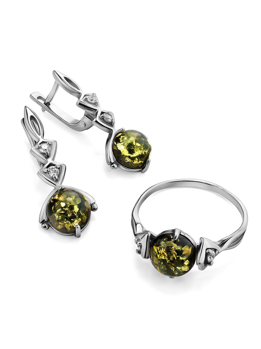 Рекомендуем вам для создания завершённого образа также приобрести кольцо «Самбия» с натуральным зелёным янтарём. _x000D_