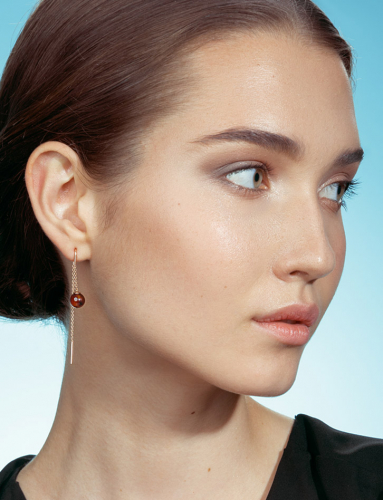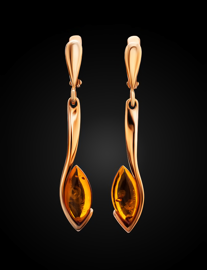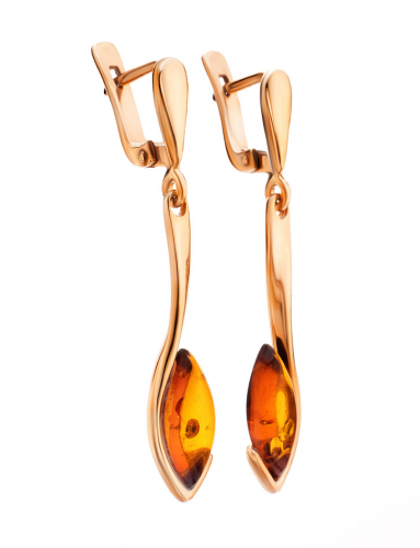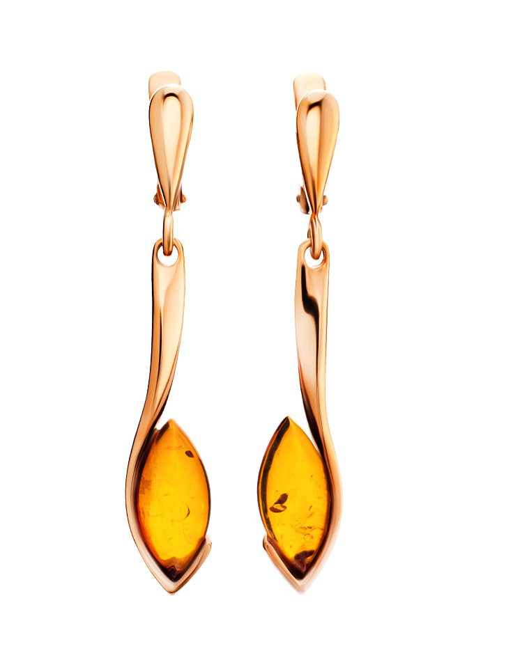 Изящные удлинённые серьги «Адажио» с натуральным коньячным янтарём