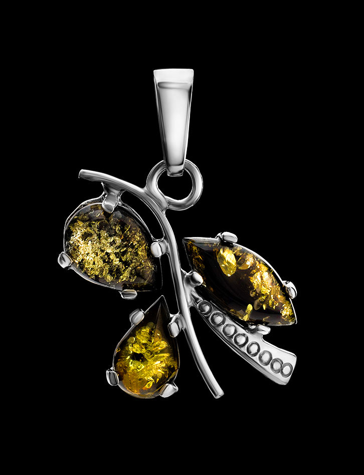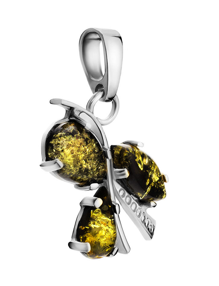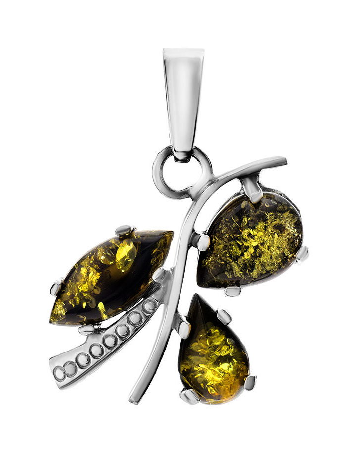 Изящный кулон из натурального сверкающего зеленого янтаря «Магнолия»