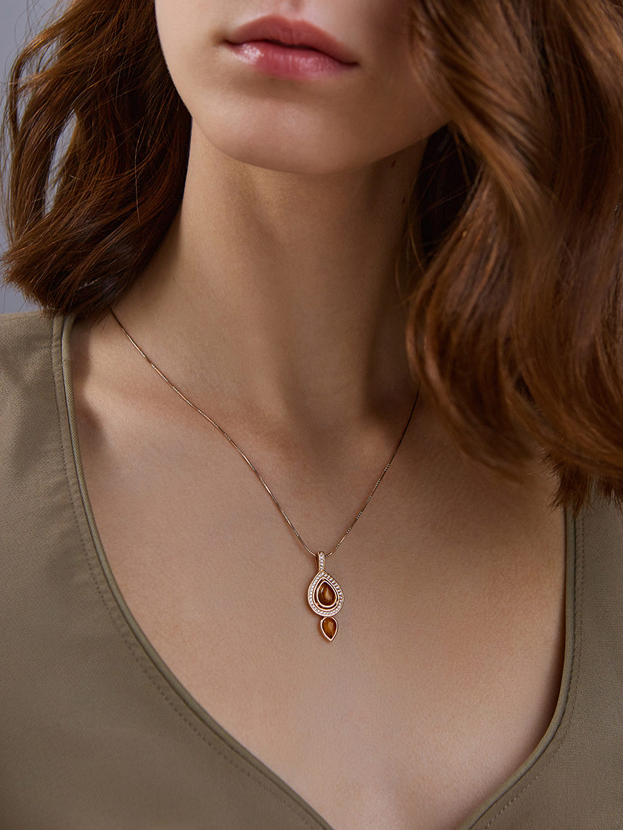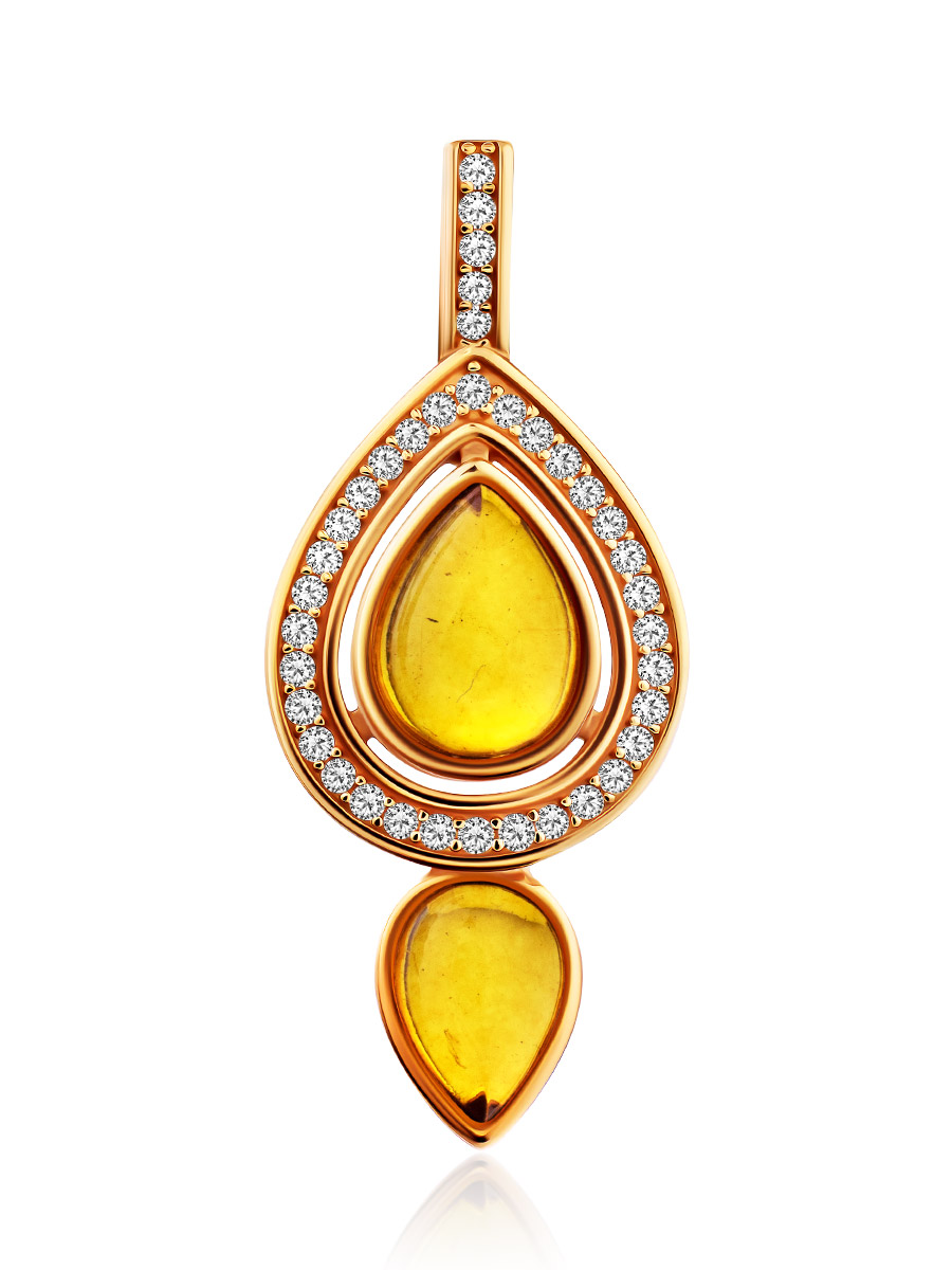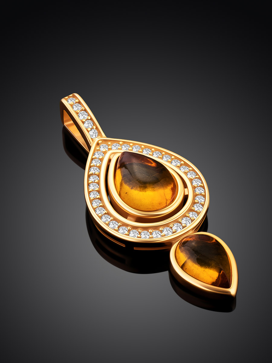 Изящный кулон «Ренессанс» с кристаллами и янтарём