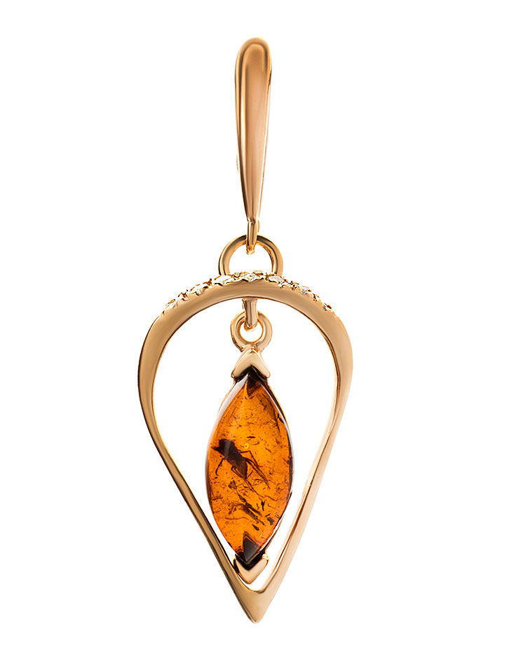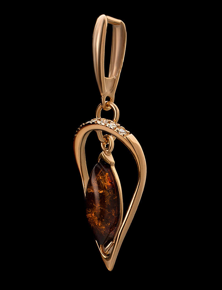 Изящный кулон «Тадж-Махал» с коньячным янтарём и фианитами