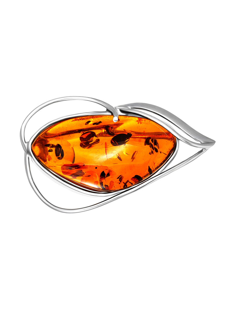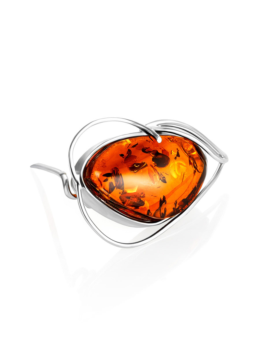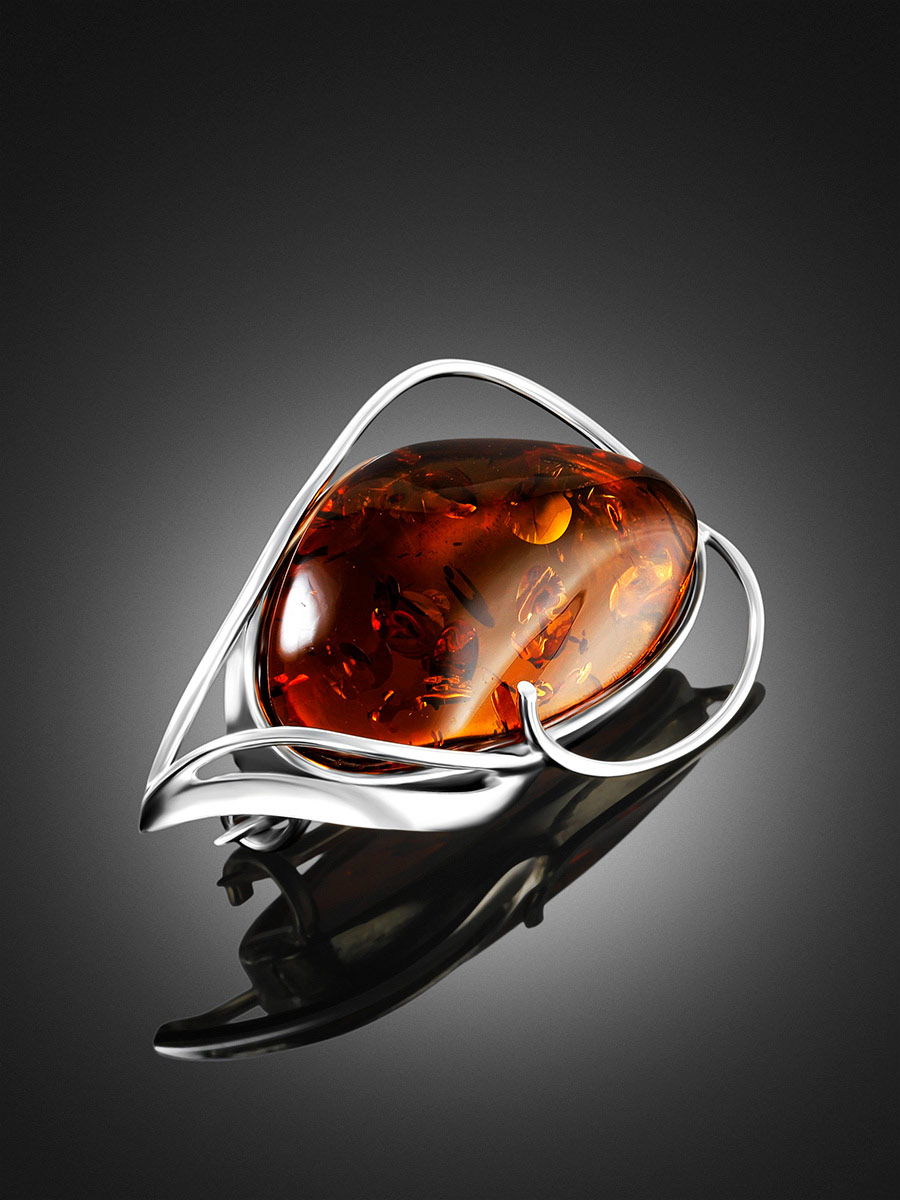 Изысканная брошь из натурального балтийского янтаря коньячного цвета «Маньяна»