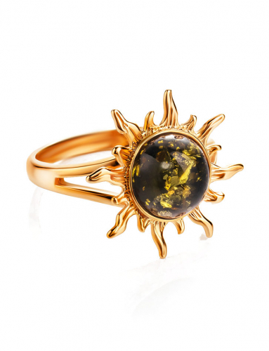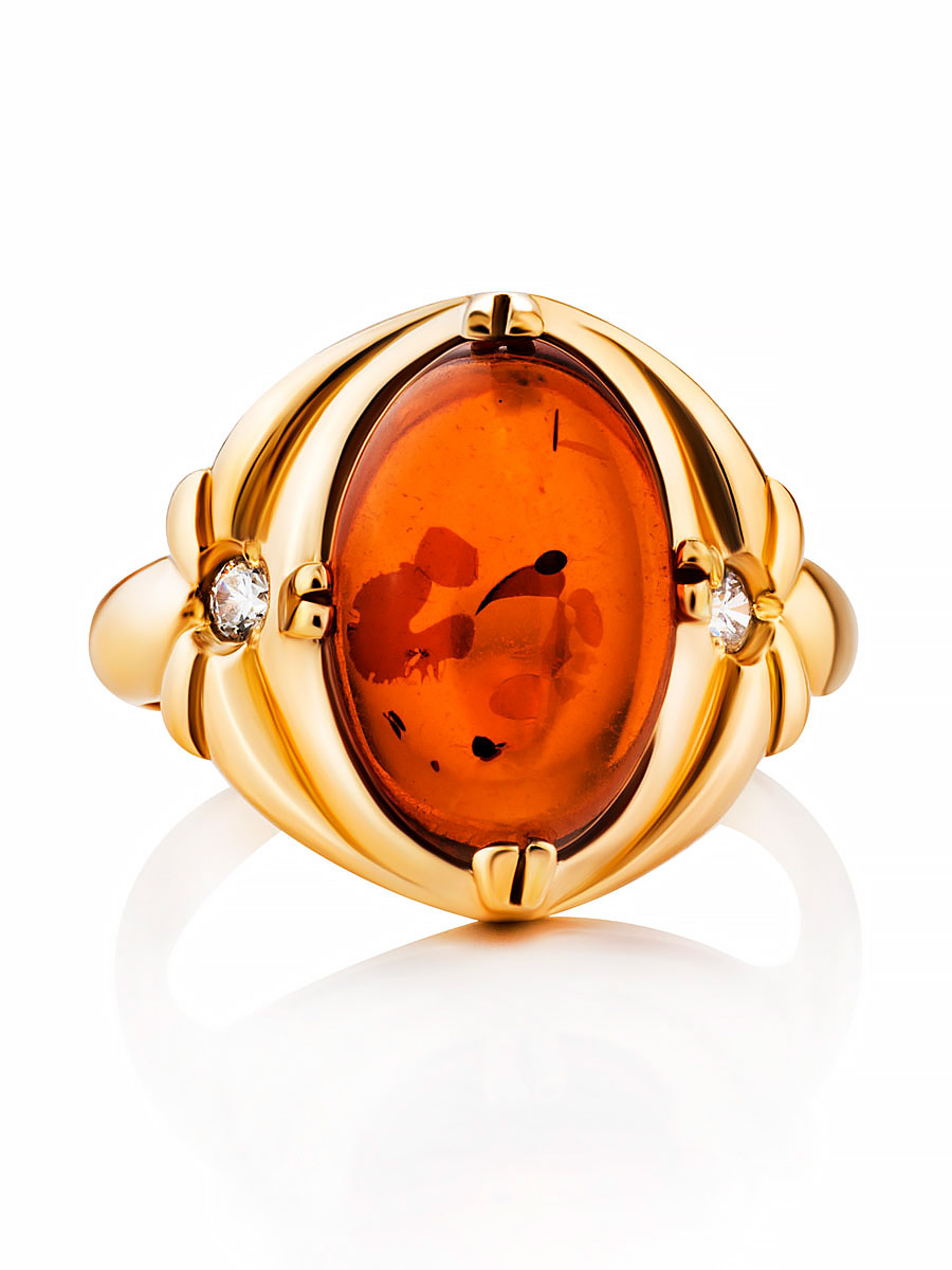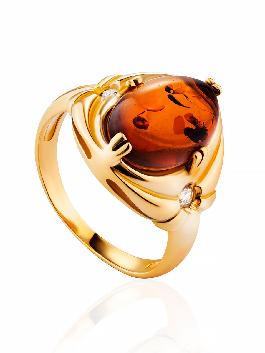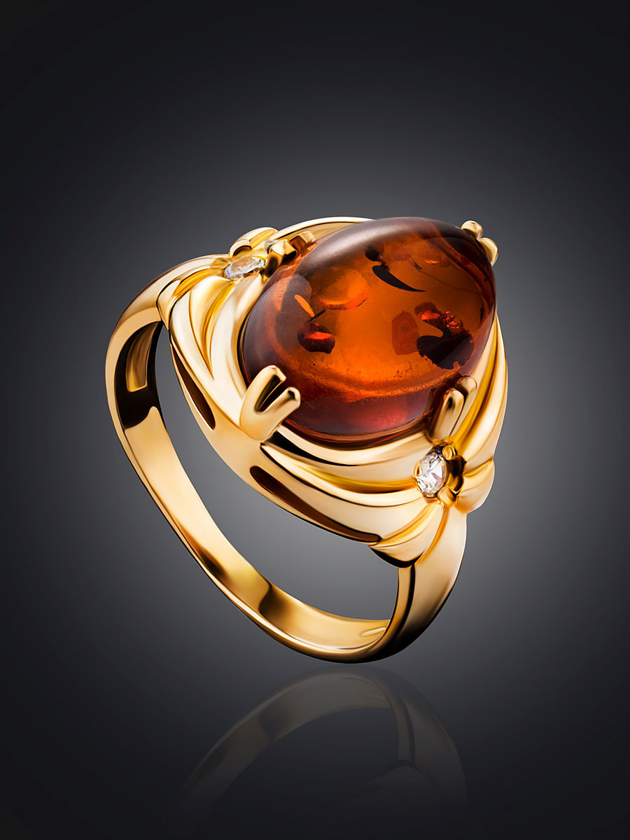 Изысканное кольцо из натурального коньячного янтаря «Альбертина»