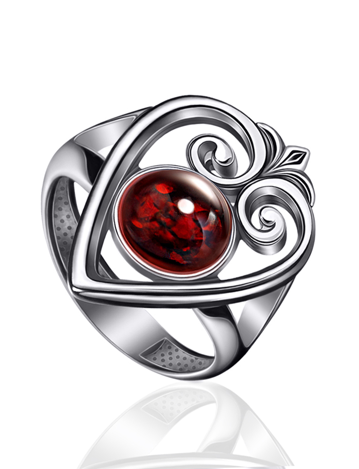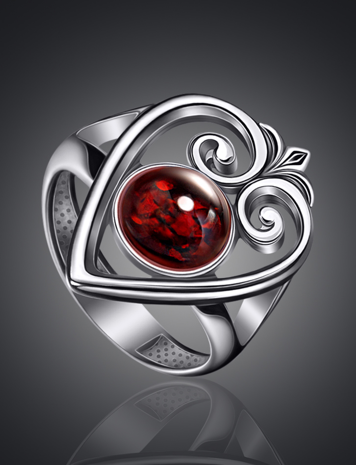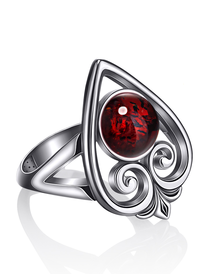 Изысканное кольцо «Кордова» из вишнёвого янтаря