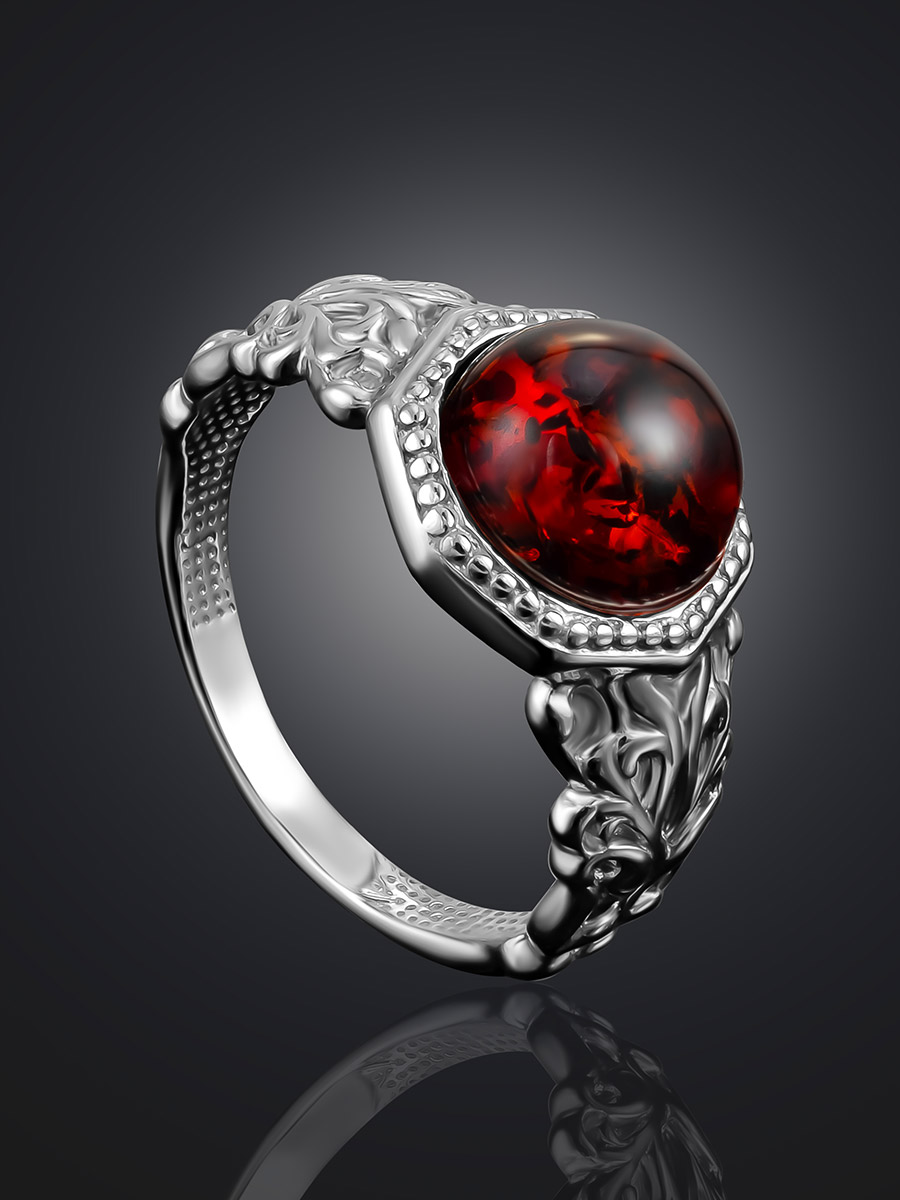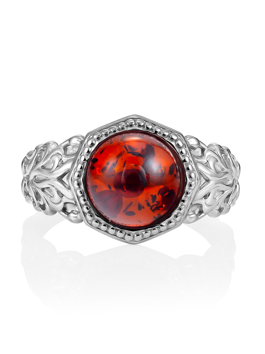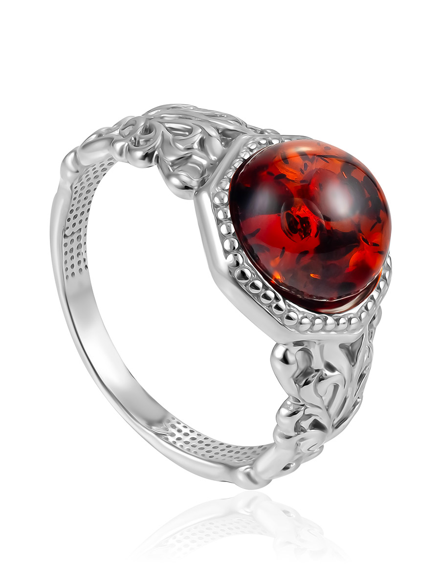 Изысканное кольцо с натуральным янтарём коньячного цвета «Шахерезада»