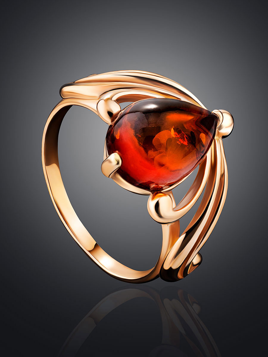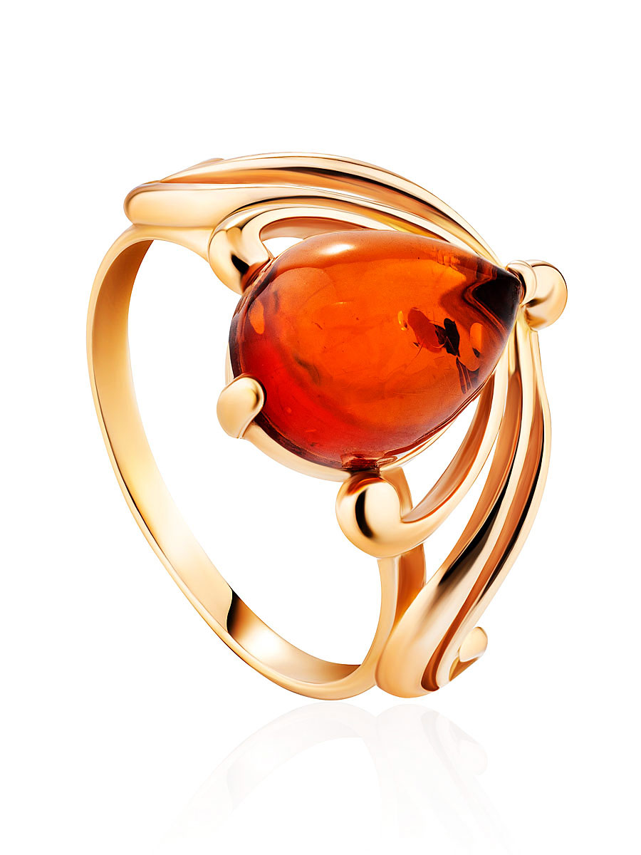 Изысканное кольцо, украшенное коньячным янтарём «Медея»