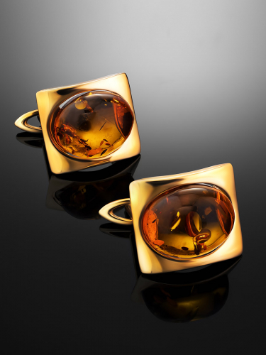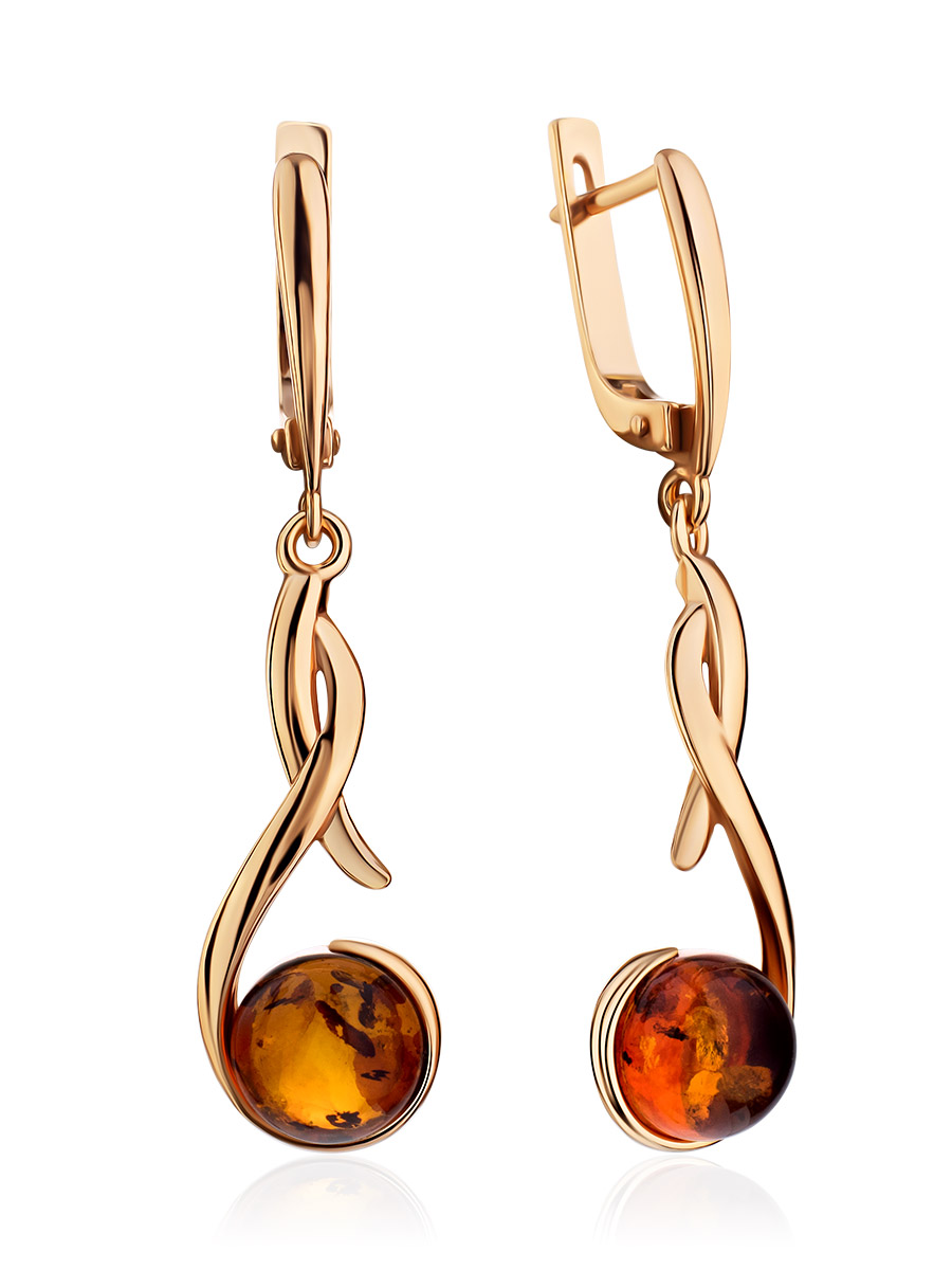 Изысканные позолоченные серьги с коньячным янтарём «Феникс»