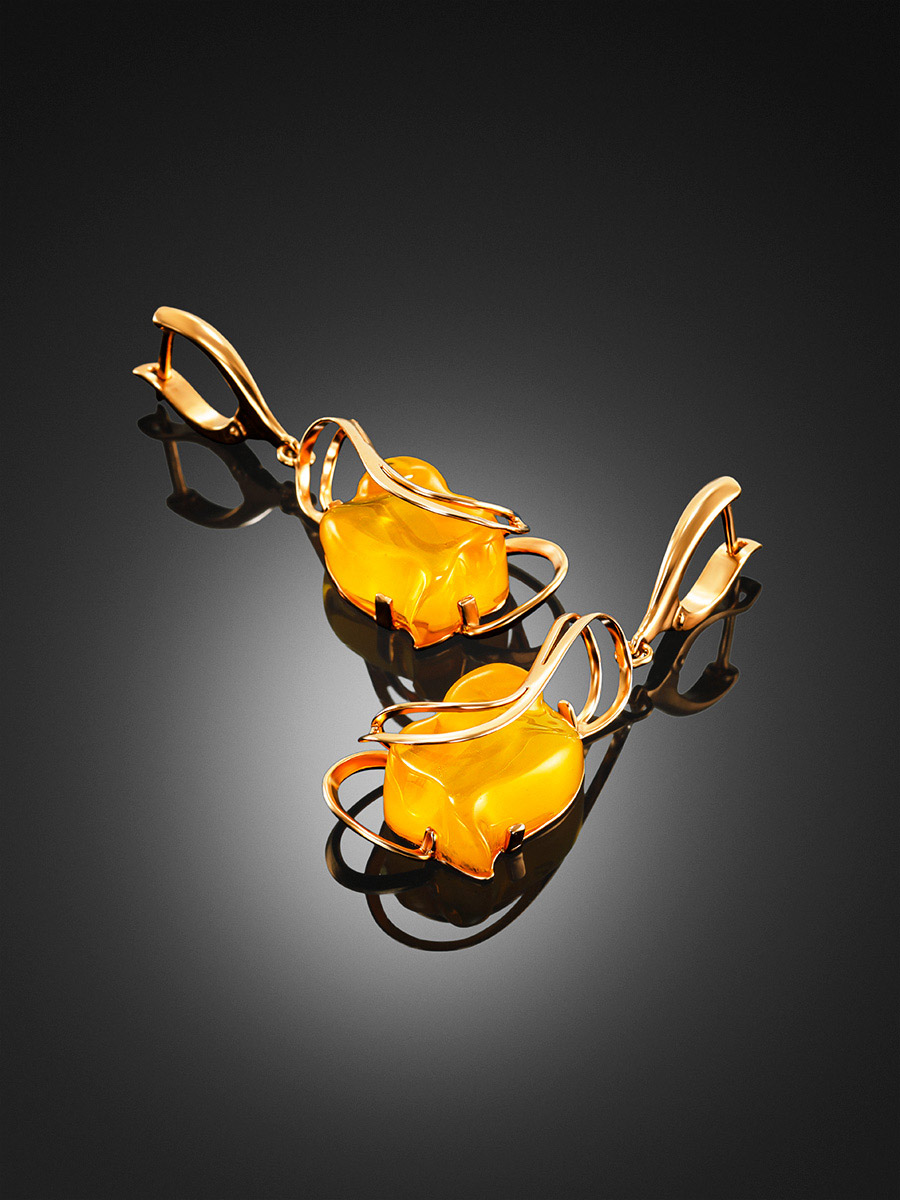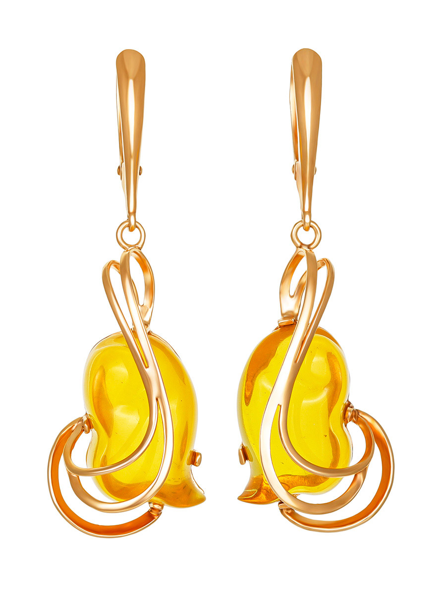 Изысканные позолоченные серьги с лимонным янтарем «Риальто»