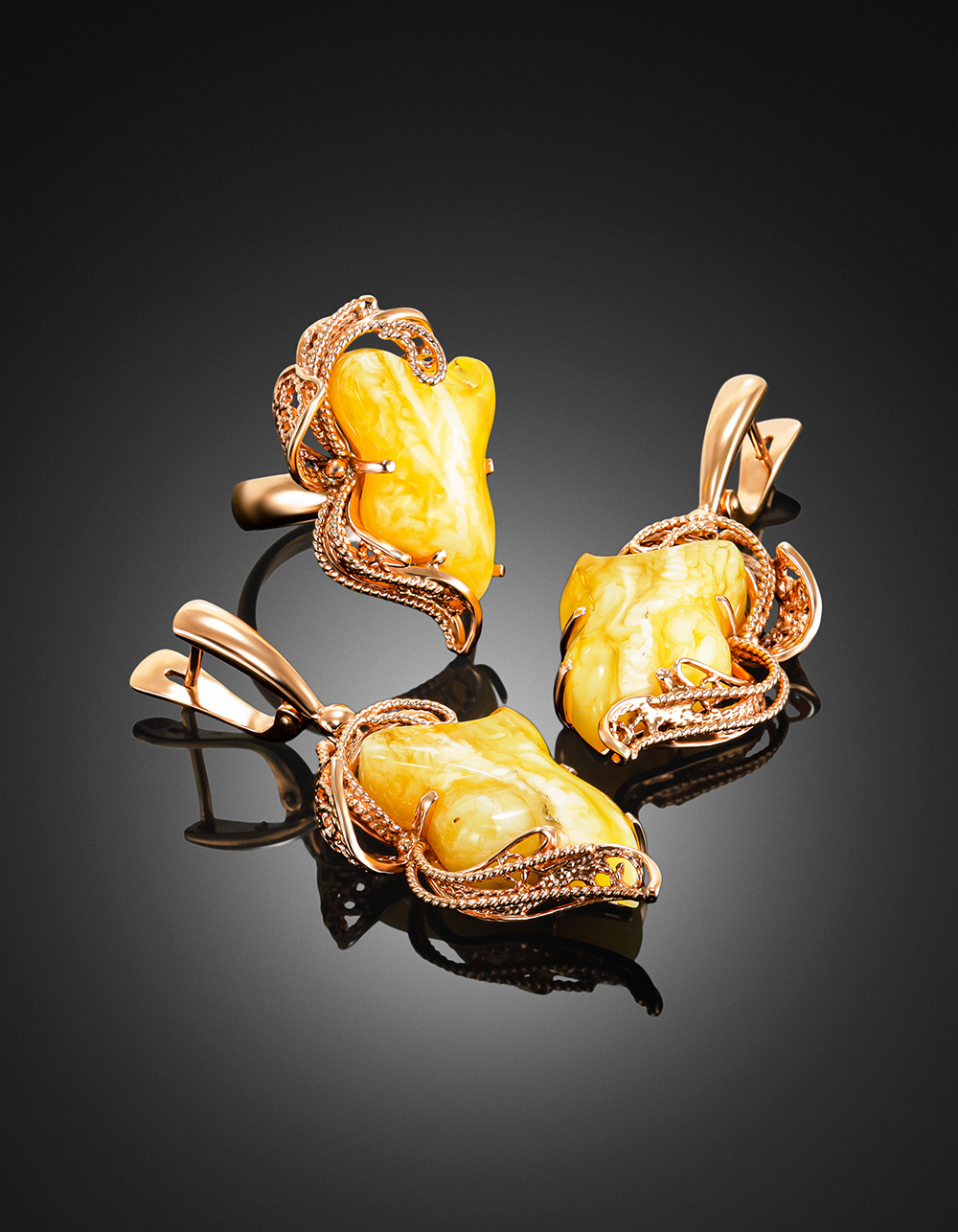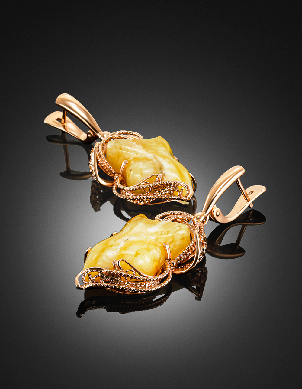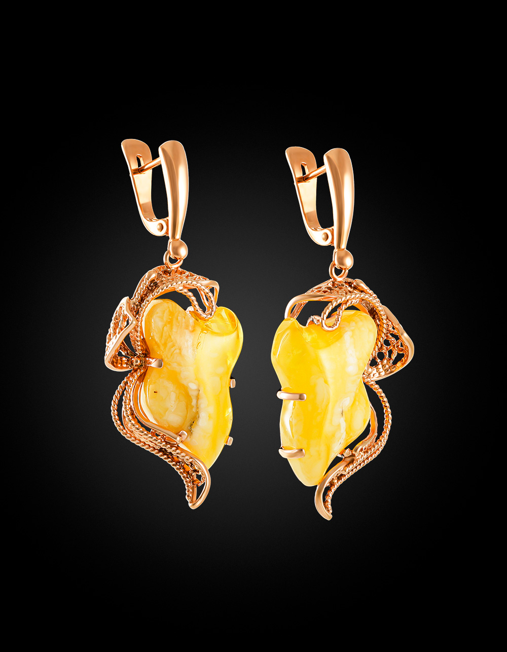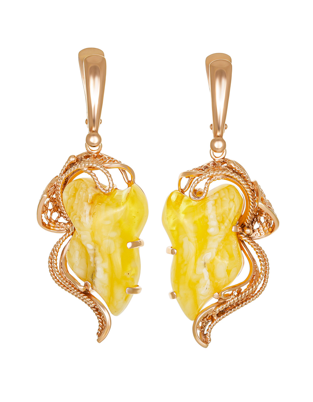 Изысканные серьги «Филигрань» из натурального балтийского янтаря медового цвета