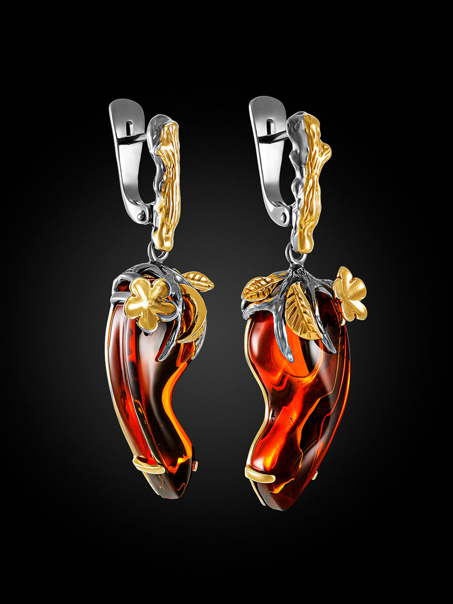 Изысканные серьги «Колибри» с натуральным коньячным янтарём