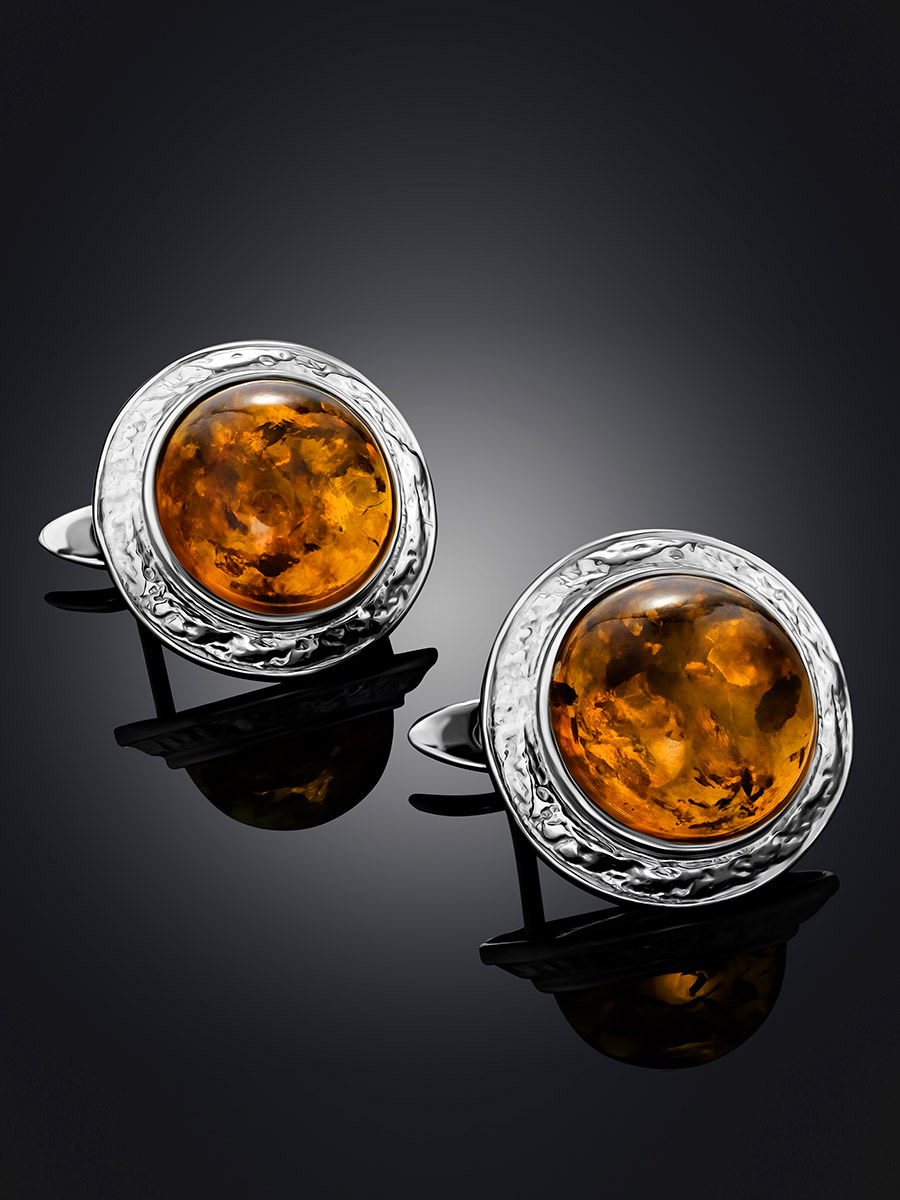 Изысканные серьги круглой формы с натуральным янтарём «Ампир»