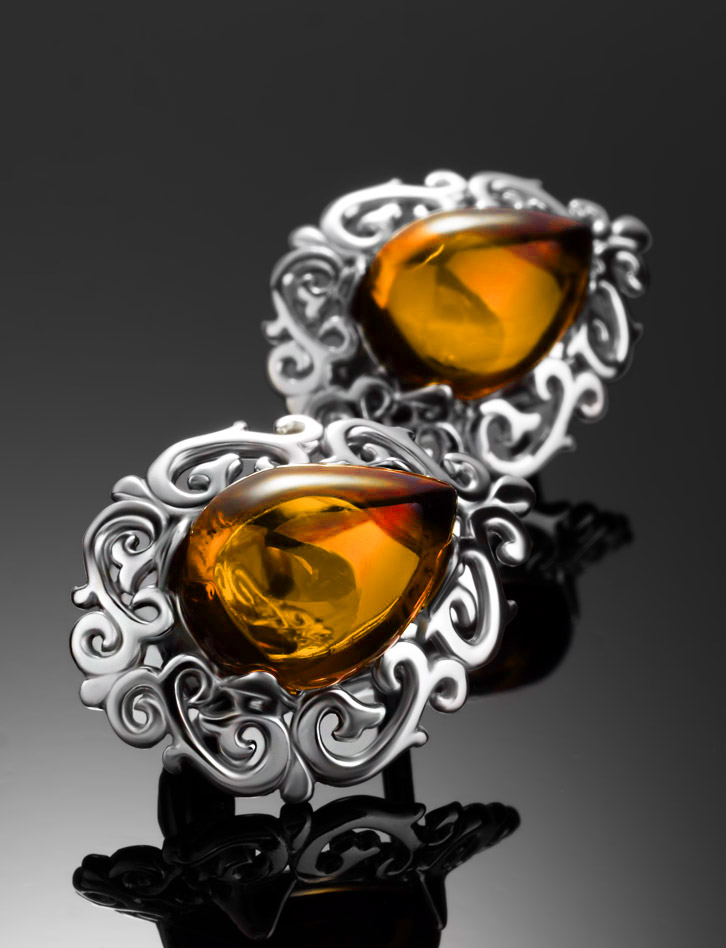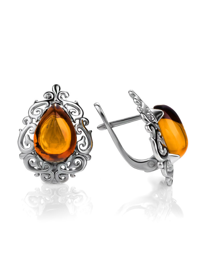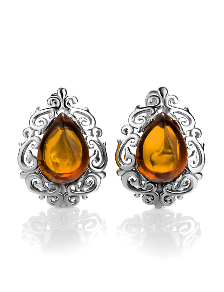 Изысканные серьги «Луксор» с золотисто-коньячным янтарём