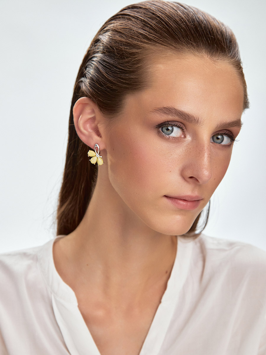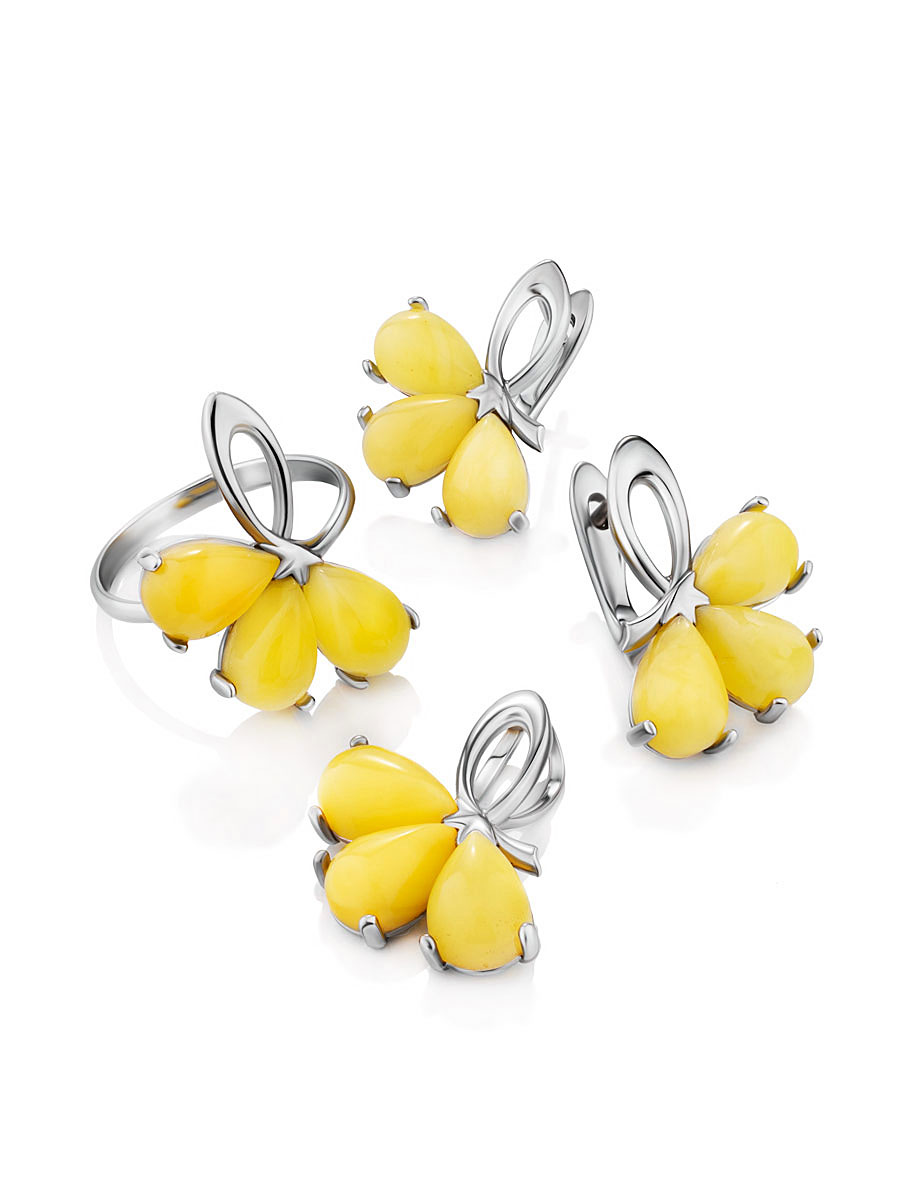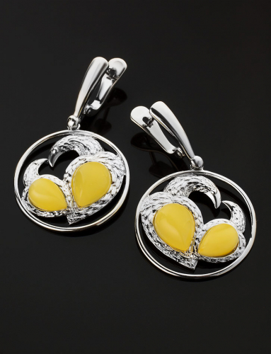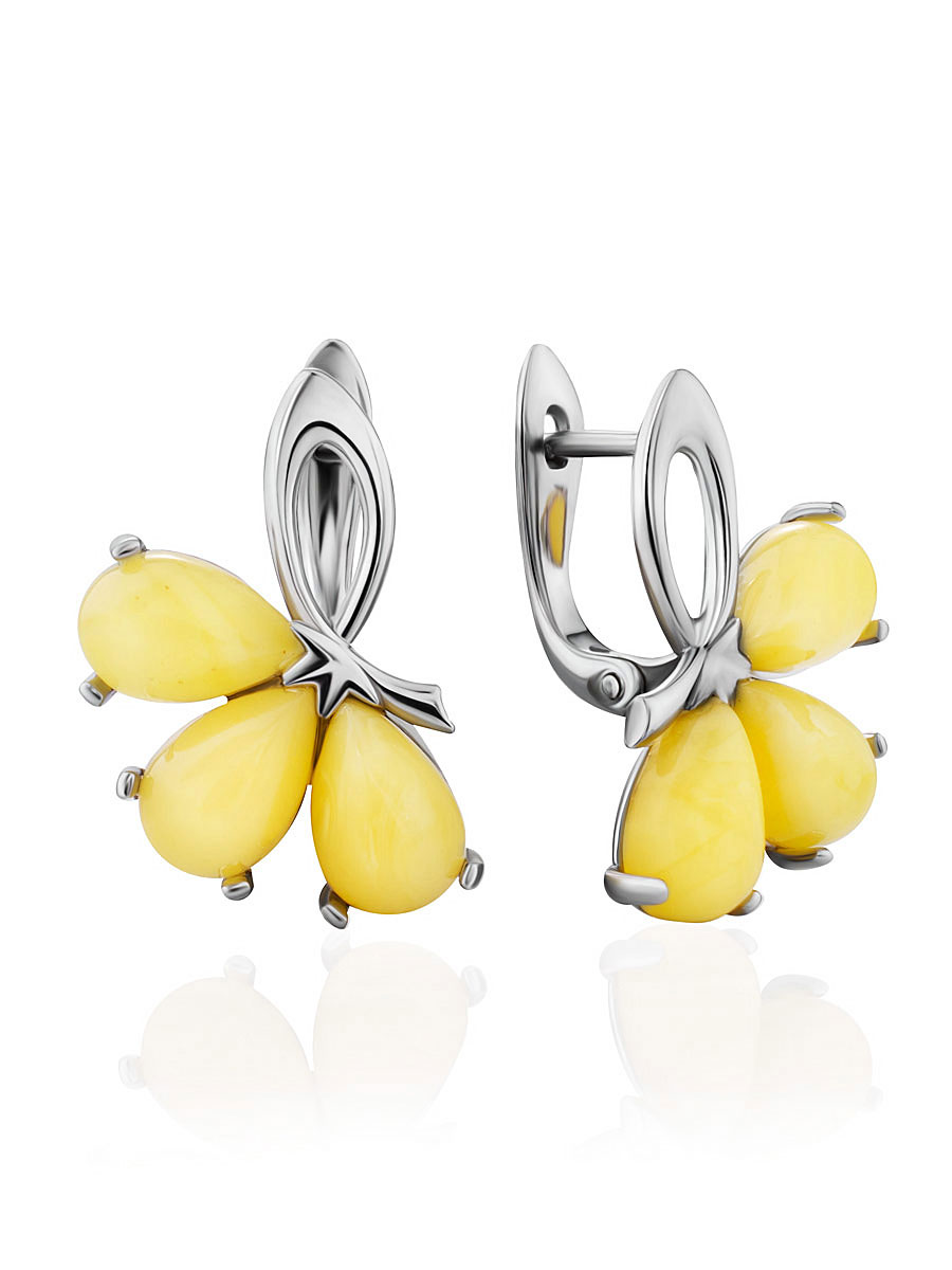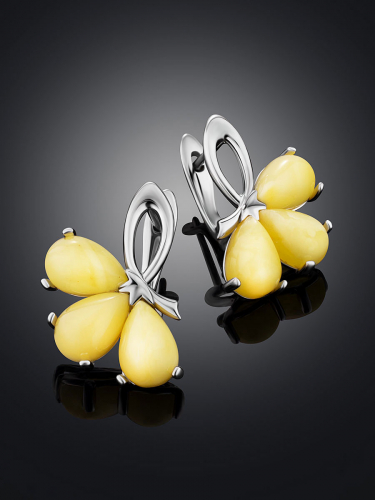 Изысканные серьги с натуральным балтийским медовым янтарём «Одуванчик»