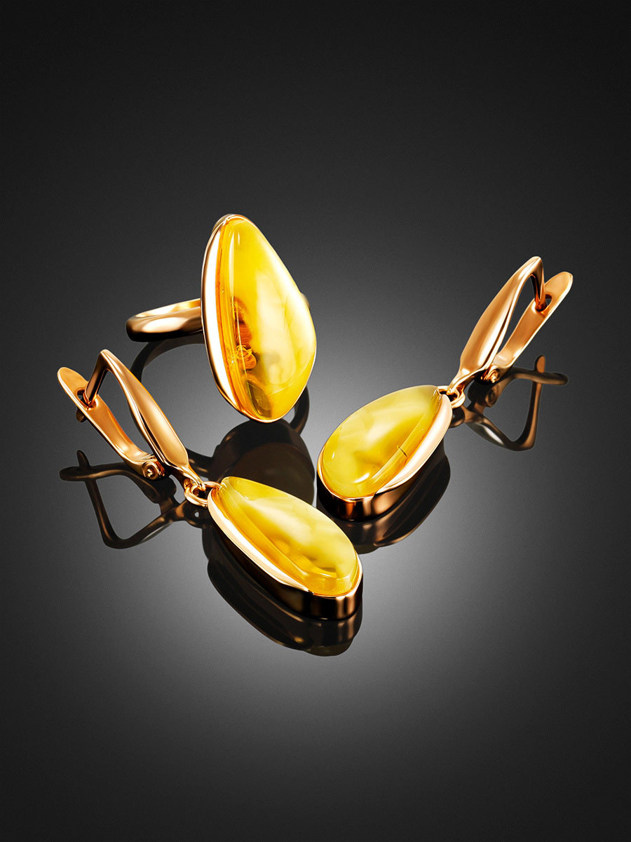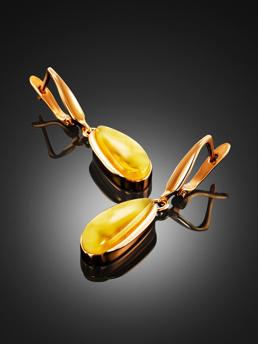 Изысканные серьги с натуральным медовым янтарём «Лагуна»